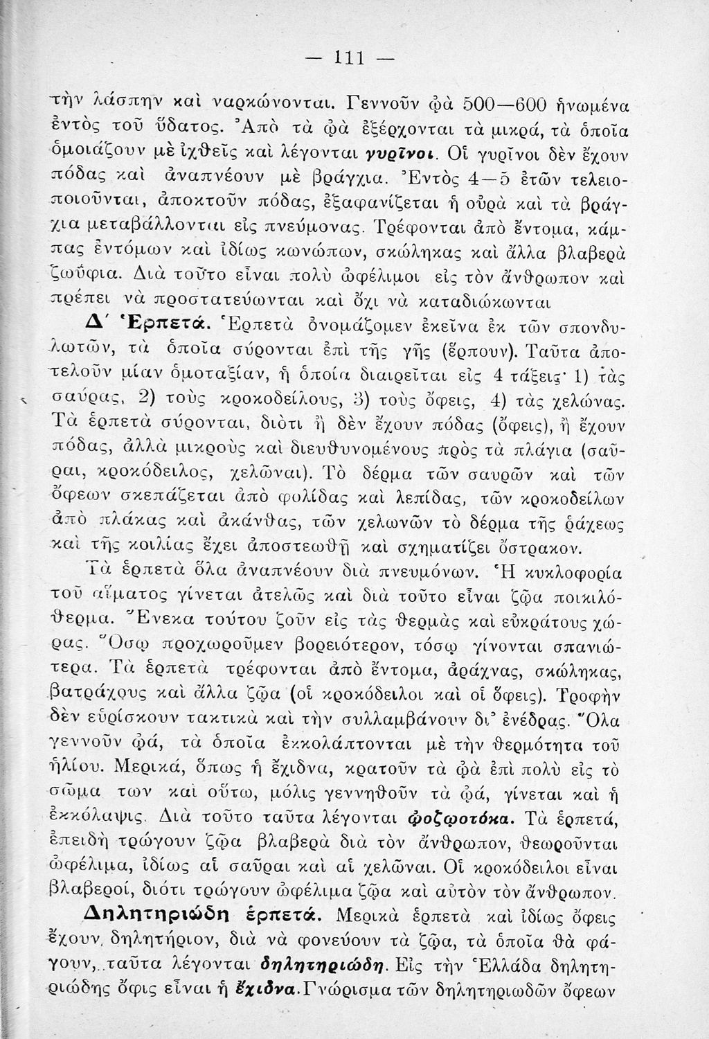 Βαθμίδα εκπαίδευσης: Πρωτοβάθμια Τάξη: Ε' Δημοτικού / ΣΤ' Δημοτικού Μάθημα: Φυσική Ιστορία Γλώσσα: Απλή καθαρεύουσα Παρουσίαση περιεχομένου: Σχολικό εγχειρίδιο της Ε΄ και ΣΤ΄ Δημοτικού για το μάθημα της Φυσικής Ιστορίας. Περιέχει πληροφορίες για τη φυτολογία, την ανθρωπολογία, ορυκτολογία. Το βιβλίο έχει εικόνες, οι οποίες διευκολύνουν τη διδασκαλία. Ο λόγος των κειμένων είναι απλός και κατανοητός για τους μαθητές. |