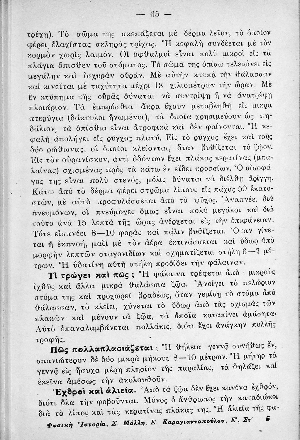 Τίτλος: Φυσική Ιστορία δια την Ε΄ και ΣΤ΄ των Δημοτικών Σχολείων είτε διδάσκονται χωριστά είτε συνδιδάσκονται