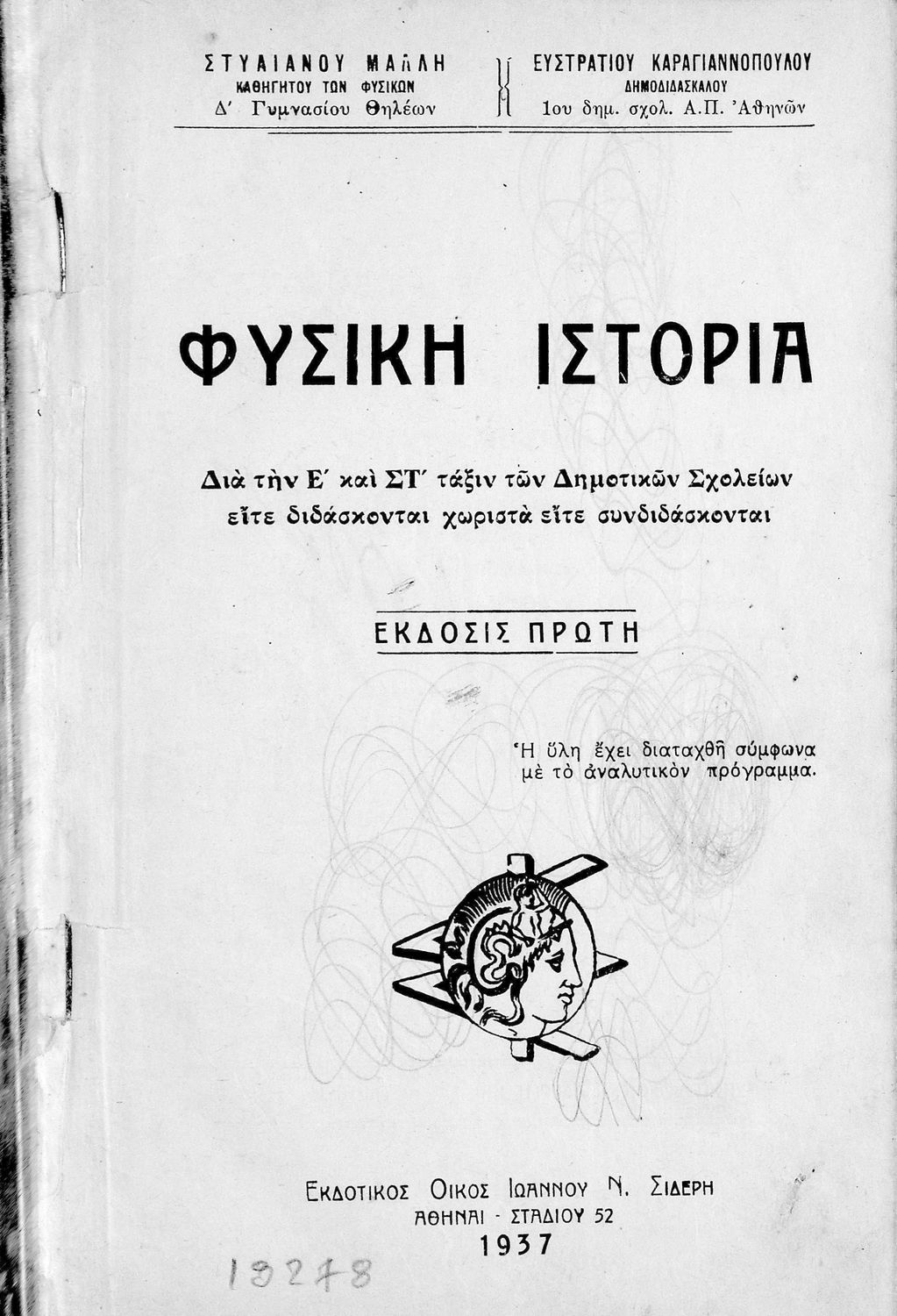 Σχολικό εγχειρίδιο της Ε΄ και ΣΤ΄ Δημοτικού για το μάθημα της Φυσικής Ιστορίας. Περιέχει πληροφορίες για τη φυτολογία, την ανθρωπολογία, ορυκτολογία. Το βιβλίο έχει εικόνες, οι οποίες διευκολύνουν τη διδασκαλία. Ο λόγος των κειμένων είναι απλός και κατανοητός για τους μαθητές.