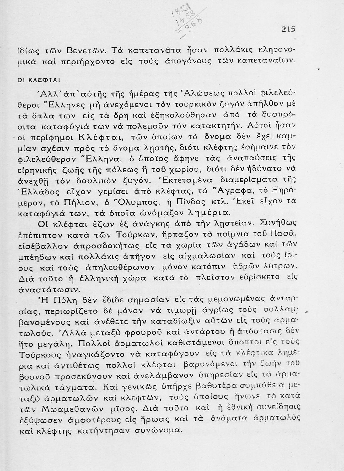 Βαθμίδα εκπαίδευσης: Δευτεροβάθμια Τάξη: Ε' Γυμνασίου Μάθημα: Ιστορία Γλώσσα: Απλή καθαρεύουσα Παρουσίαση περιεχομένου: Σχολικό εγχειρίδιο Ιστορίας Ε΄ Γυμνασίου που καλύπτει την περίοδο της Αναγέννησης και του Διαφωτισμού στην Ευρώπη και την προετοιμασία της Ελληνικής Επανάστασης. |