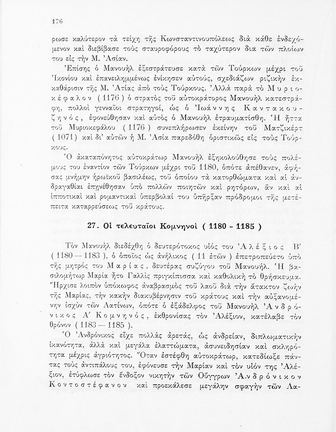 Βαθμίδα εκπαίδευσης: Δευτεροβάθμια Τάξη: Δ' Γυμνασίου Μάθημα: Ιστορία Γλώσσα: Απλή καθαρεύουσα Παρουσίαση περιεχομένου: Σχολικό εγχειρίδιο Ιστορίας Δ' Εξαταξίου Γυμνασίου που καλύπτει την περίοδο από την ίδρυση της Κωνσταντινούπολης ως την πτώση της Βυζαντινής Αυτοκρατορίας. |