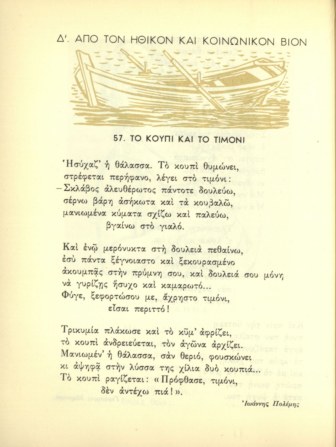 Αναγνωστικό ΣΤ΄ Δημοτικού που αντλεί τα θέματά του από τη θρησκευτική, εθνική, οικογενειακή, κοινωνική και επαγγελματική ζωή και την σύγχρονη ελληνική ιστορία. Φέρει το σύμβολο της δικτατορίας.