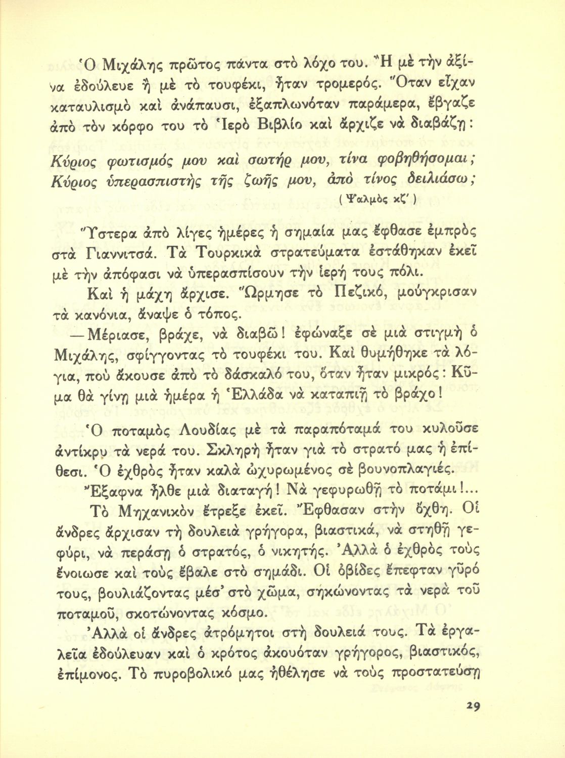 Αναγνωστικό ΣΤ΄ Δημοτικού που αντλεί τα θέματά του από τη θρησκευτική, εθνική, οικογενειακή, κοινωνική και επαγγελματική ζωή και την σύγχρονη ελληνική ιστορία. Περιέχει και λεξιλόγιο.