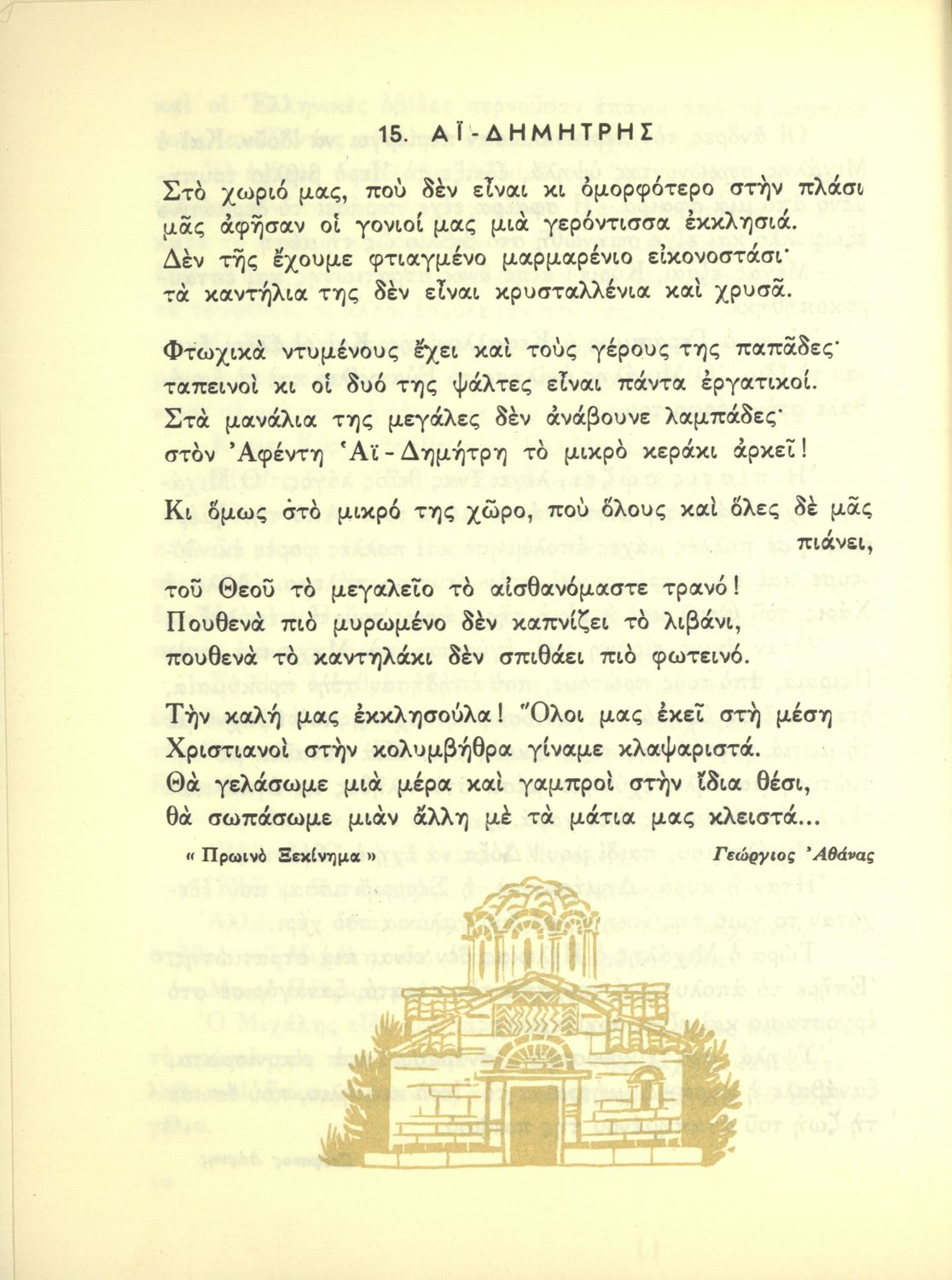 Αναγνωστικό ΣΤ΄ Δημοτικού που αντλεί τα θέματά του από τη θρησκευτική, εθνική, οικογενειακή, κοινωνική και επαγγελματική ζωή και την σύγχρονη ελληνική ιστορία.
