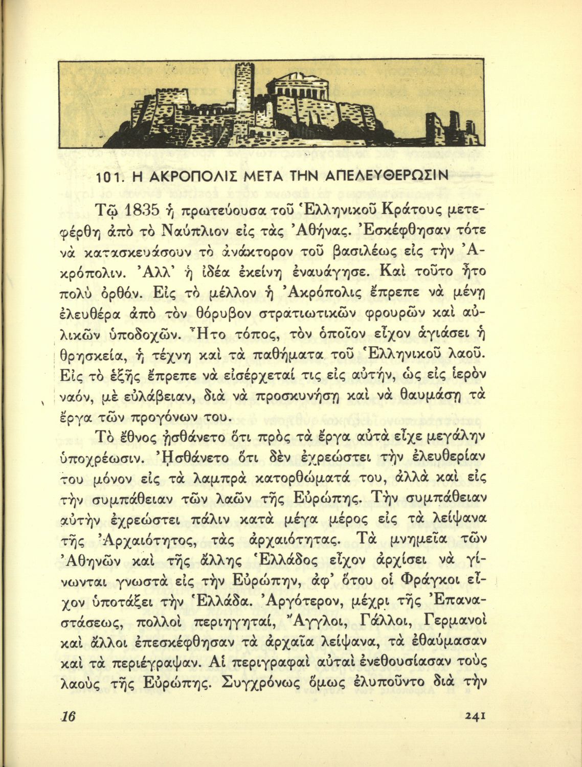 Αναγνωστικό της ΣΤ΄ Δημοτικού που κυκλοφόρησε σε 7.000 αντίτυπα 25 ημέρες πριν την 4η Αυγούστου 1936, οπότε κατά την επόμενη σχολική χρονιά διδάχτηκε ελάχιστα και η έκδοσή του με αυτή την μορφή σταμάτησε.