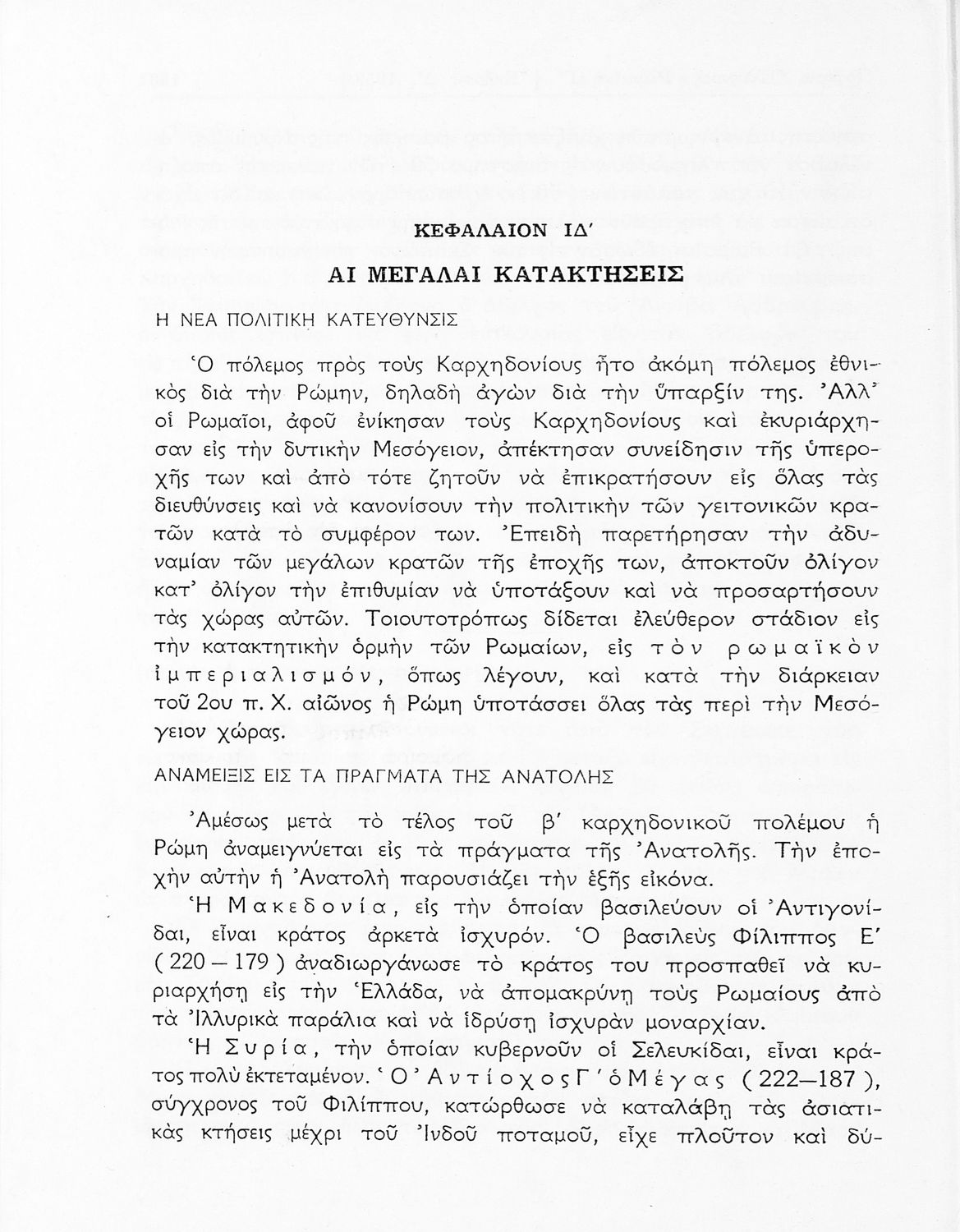 Σχολικό εγχειρίδιο Ιστορίας Β΄ Γυμνασίου που καλύπτει την περίοδο από την κατάρρευση της Μακεδονικής Ηγεμονίας μέχρι τα χρόνια του Μ. Κωνσταντίνου και του Θεοδοσίου του Μεγάλου. Περιέχει χρονολογικό πίνακα των