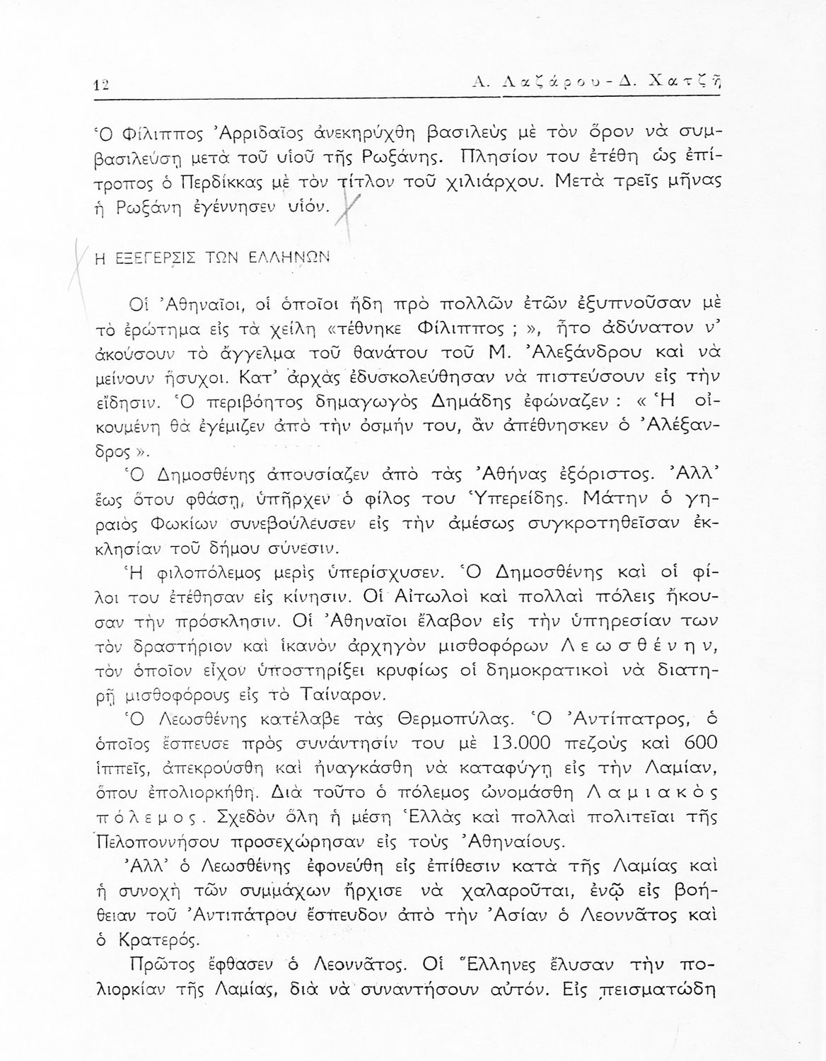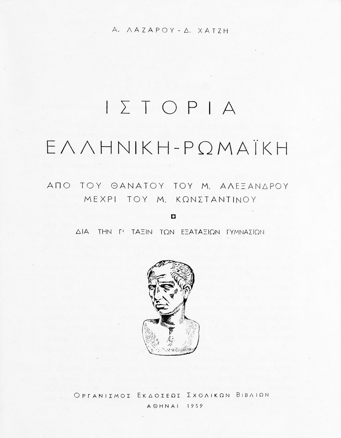 Κωδικός αναγνώρισης: 01-18283 Τίτλος: Ιστορία ελληνική - ρωμαϊκή από του θανάτου του Μ. Αλεξάνδρου μέχρι του Μ. Κωνσταντίνου. Δια την Γ΄ Τάξιν των Εξαταξίων Γυμνασίων Συγγραφέας: Α. Λάζαρου, Δ. Χατζής Μέγεθος και υπόστρωμα: Σχολικό εγχειρίδιο, σκληρό εξώφυλλο, 282 σελίδες. Σκίτσα, χάρτης, εικόνες (ασπρόμαυρα). |