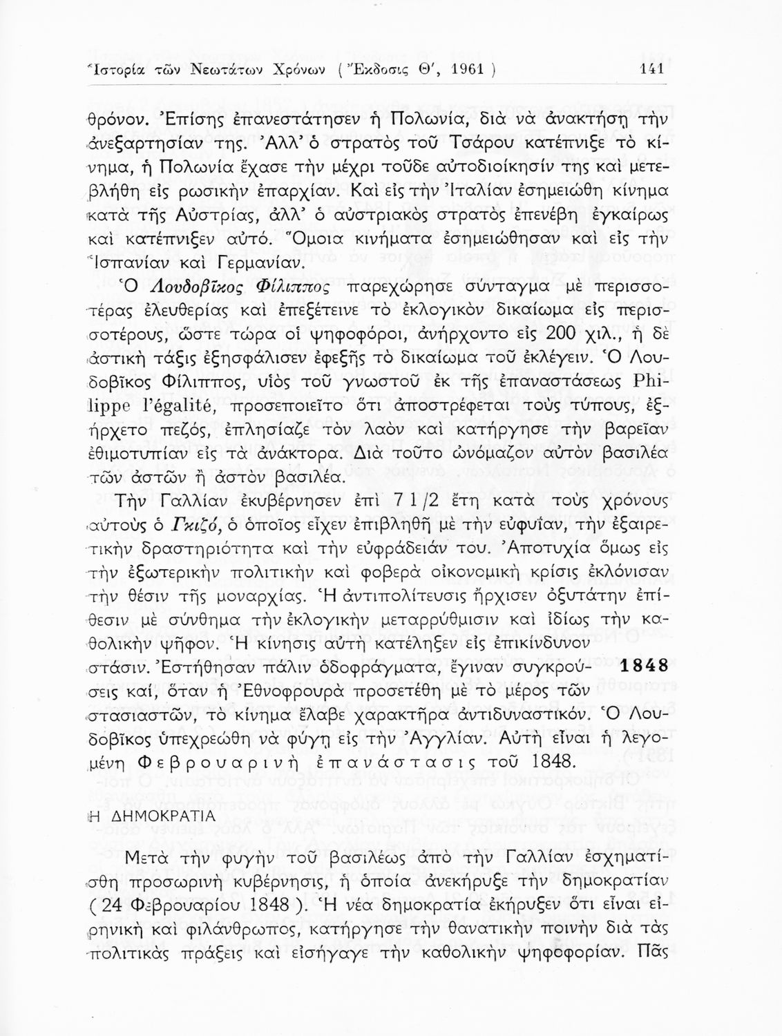 Ιστορία των Νεωτάτων Χρόνων. Από της Συνθήκης της Βιέννης (1815) μέχρι των ημερών μας. Δια την ΣΤ΄ Τάξιν των Γυμνασίων