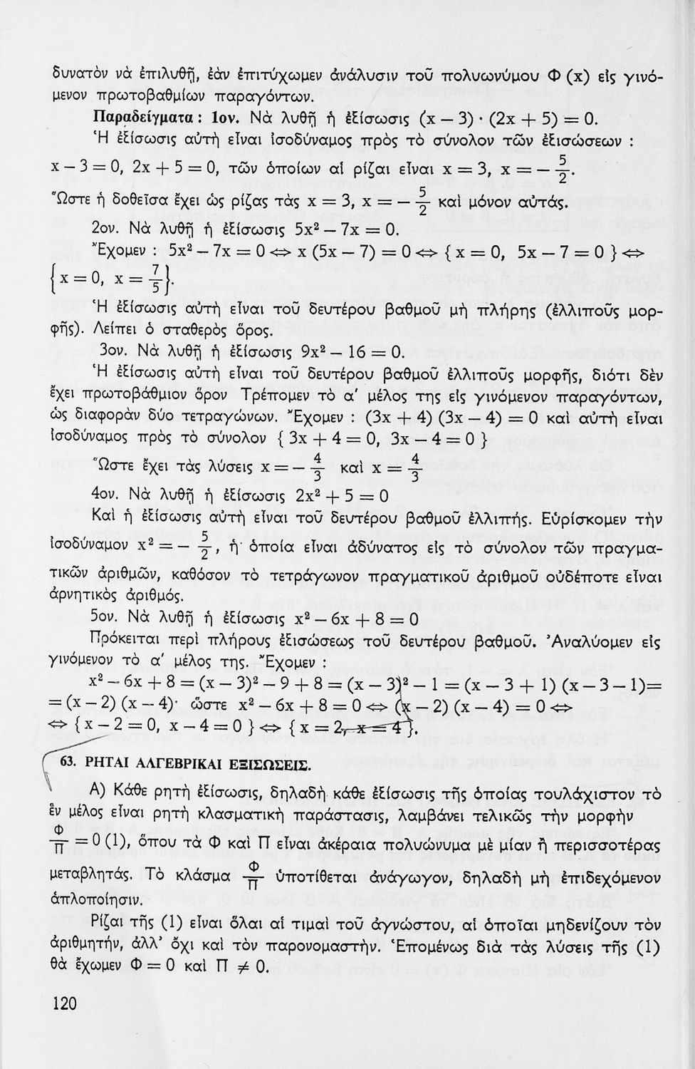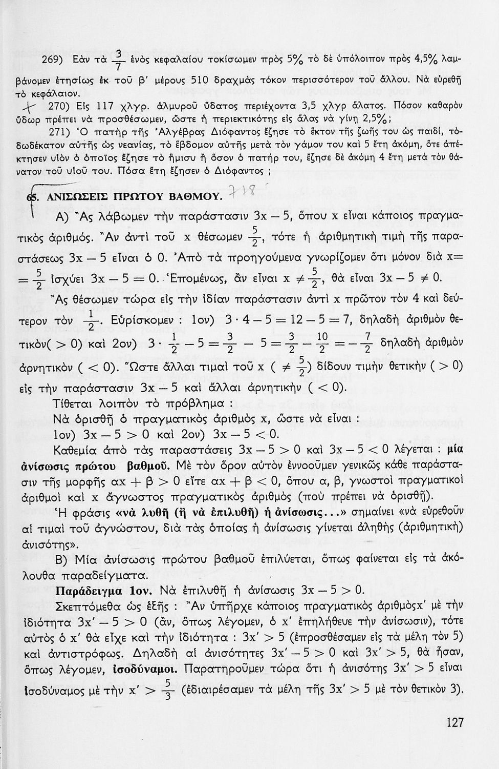 Σχολικό εγχειρίδιο Μαθηματικών Γ΄ Γυμνασίου που περιλαμβάνει θεωρία, παραδείγματα και ασκήσεις. Φέρει το σύμβολο της δικτατορίας.