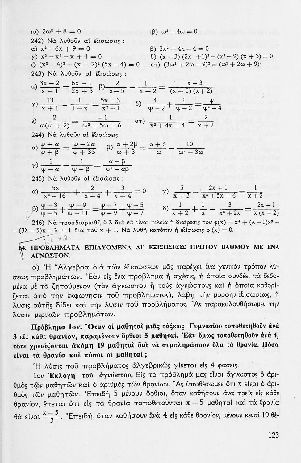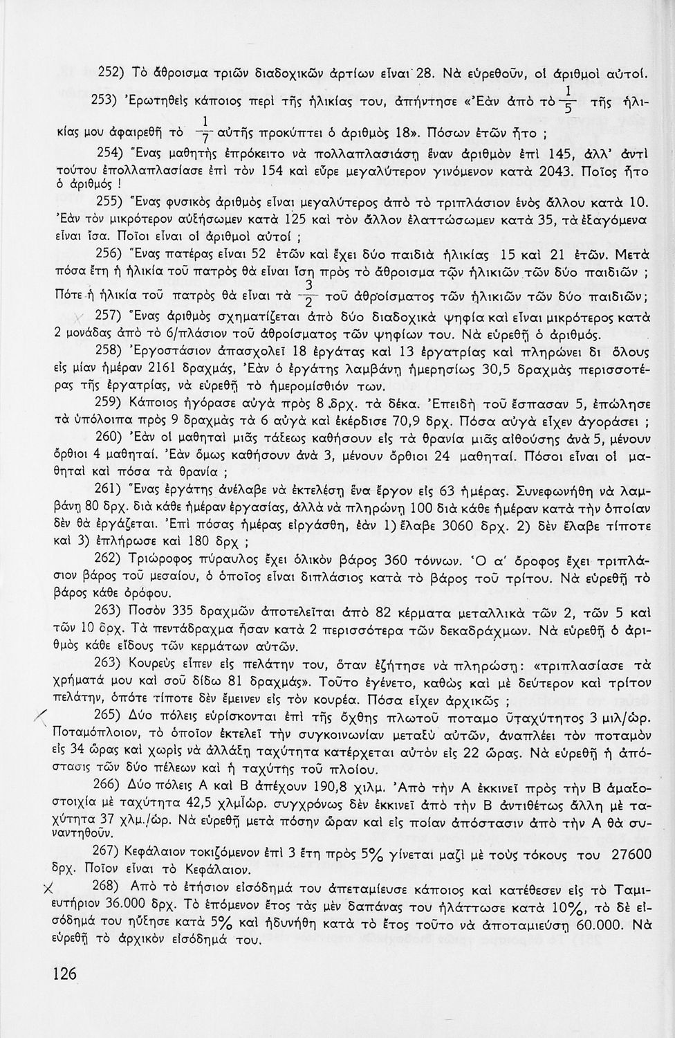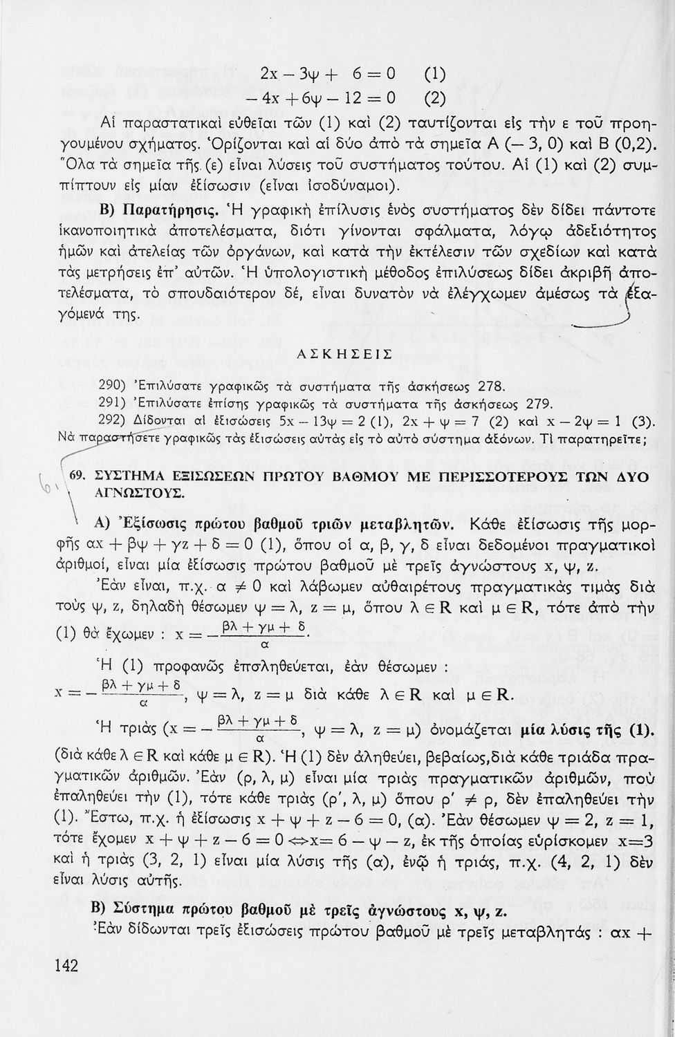 Βαθμίδα εκπαίδευσης: Δευτεροβάθμια Τάξη: Γ' Γυμνασίου Μάθημα: Μαθηματικά Γλώσσα: Απλή καθαρεύουσα Παρουσίαση περιεχομένου: Σχολικό εγχειρίδιο Μαθηματικών Γ΄ Γυμνασίου που περιλαμβάνει θεωρία, παραδείγματα και ασκήσεις. Φέρει το σύμβολο της δικτατορίας. |