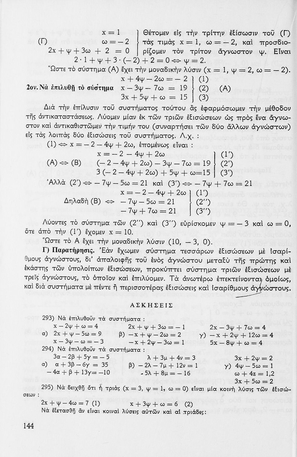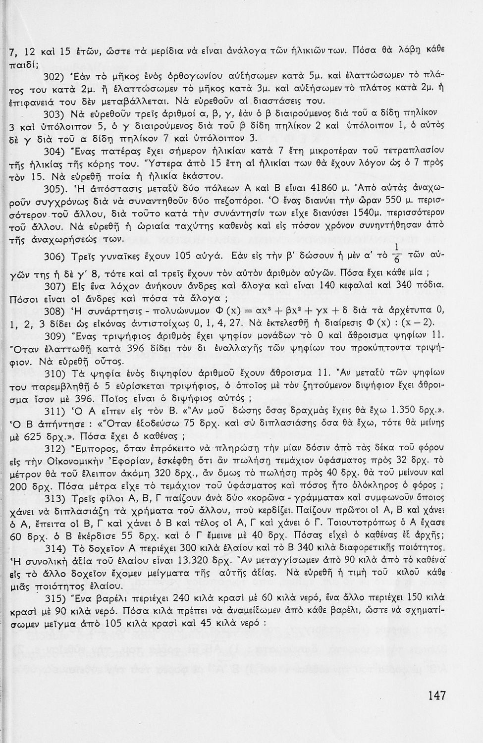Βαθμίδα εκπαίδευσης: Δευτεροβάθμια Τάξη: Γ' Γυμνασίου Μάθημα: Μαθηματικά Γλώσσα: Απλή καθαρεύουσα Παρουσίαση περιεχομένου: Σχολικό εγχειρίδιο Μαθηματικών Γ΄ Γυμνασίου που περιλαμβάνει θεωρία, παραδείγματα και ασκήσεις. Φέρει το σύμβολο της δικτατορίας. |