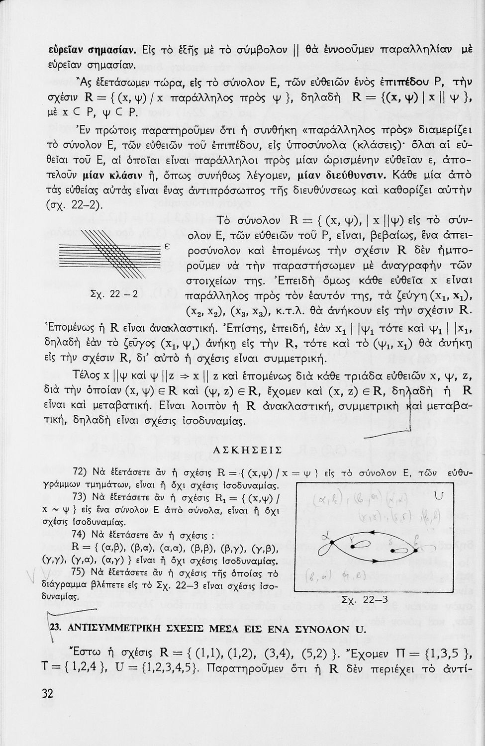 Σχολικό εγχειρίδιο μαθηματικών Γ΄ Γυμνασίου που περιλαμβάνει θεωρία, παραδείγματα και ασκήσεις. Φέρει το σύμβολο της δικτατορίας.