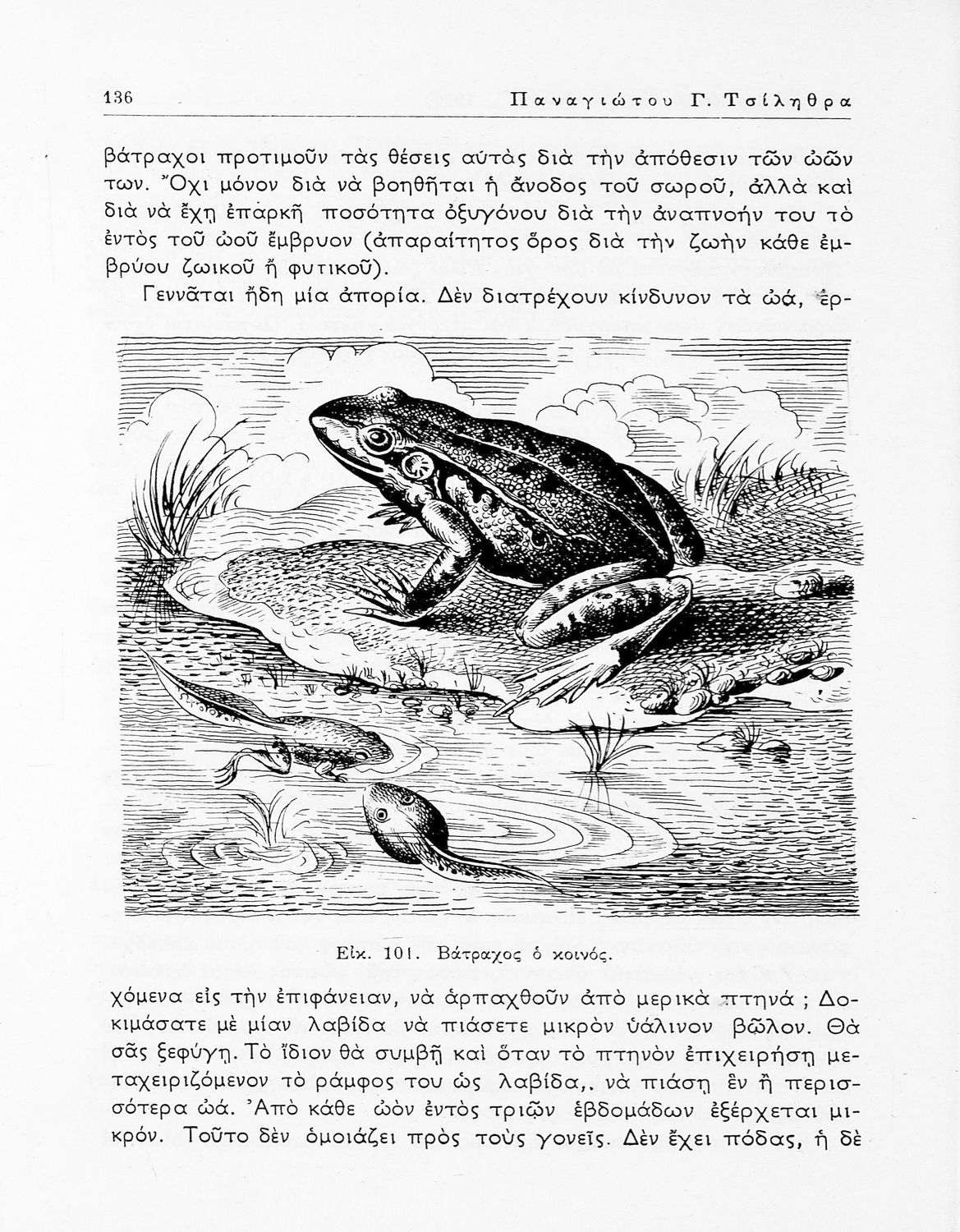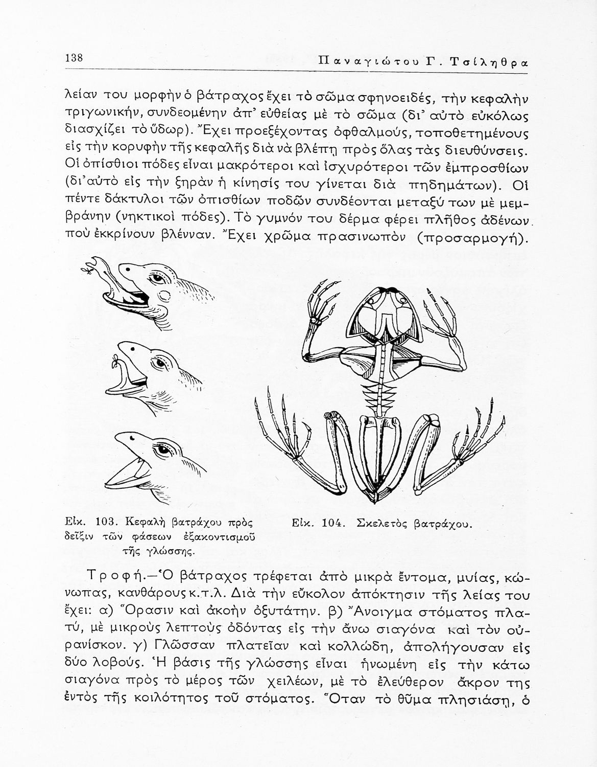 Σχολικό εγχειρίδιο Ζωολογίας για τα Γυμνάσια και τα Διδασκαλεία που εστιάζει στην ανθρώπινη φυσιολογία και παρουσιάζει τα διάφορα ζώα ανάλογα με την συνομοταξία στην οποία ανήκουν.