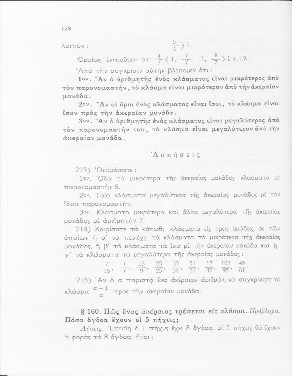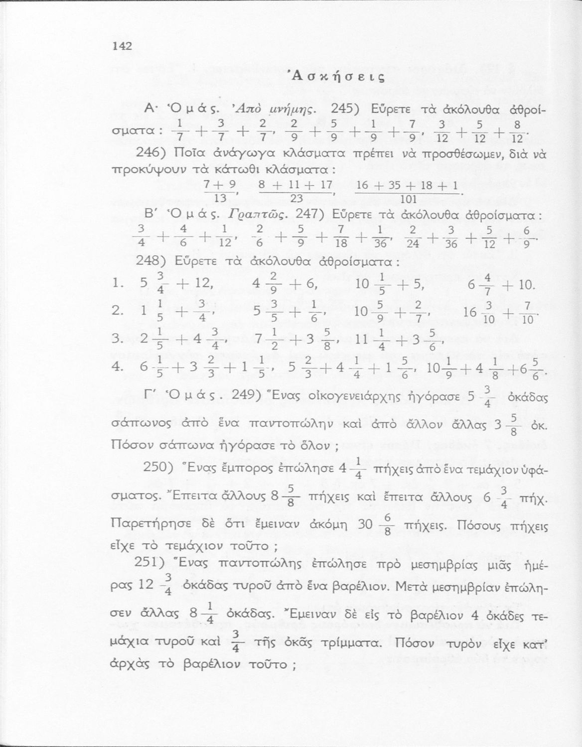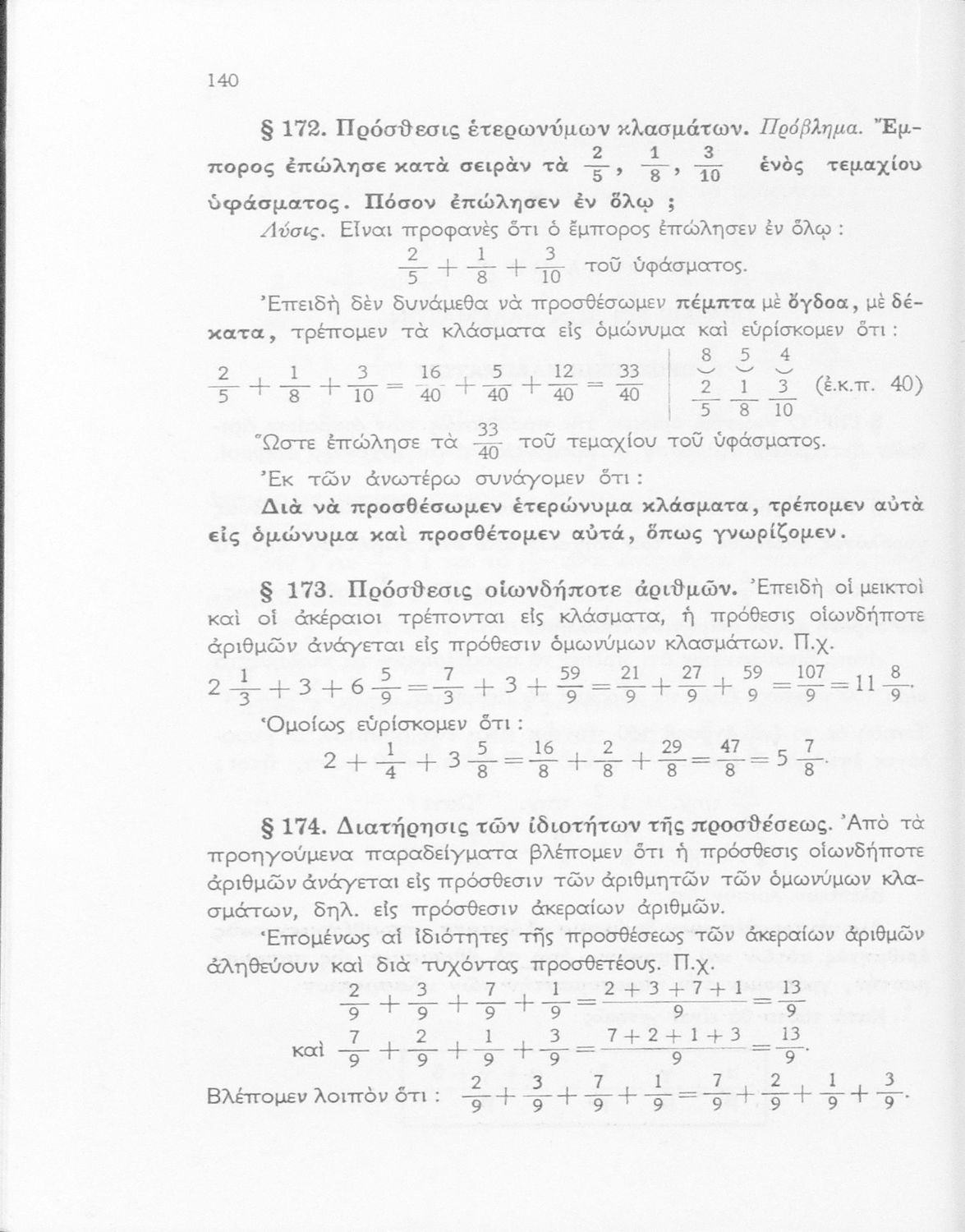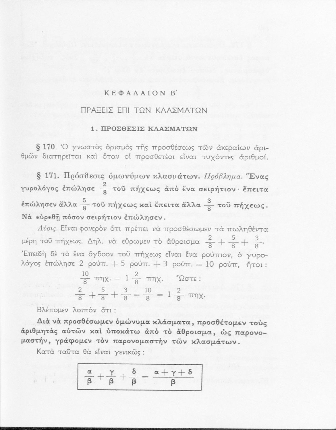 Σχολικό εγχειρίδιο Αριθμητικής Γυμνασίου που εστιάζει στις αριθμητικές πράξεις, τα κλάσματα και τις μεθόδους και είναι χωρισμένο σε θεωρία και ασκήσεις με έντονο επιχειρηματικό προσανατολισμό. Περιλαμβάνει στοιχεία Θεωρητικής Αριθμητικής.