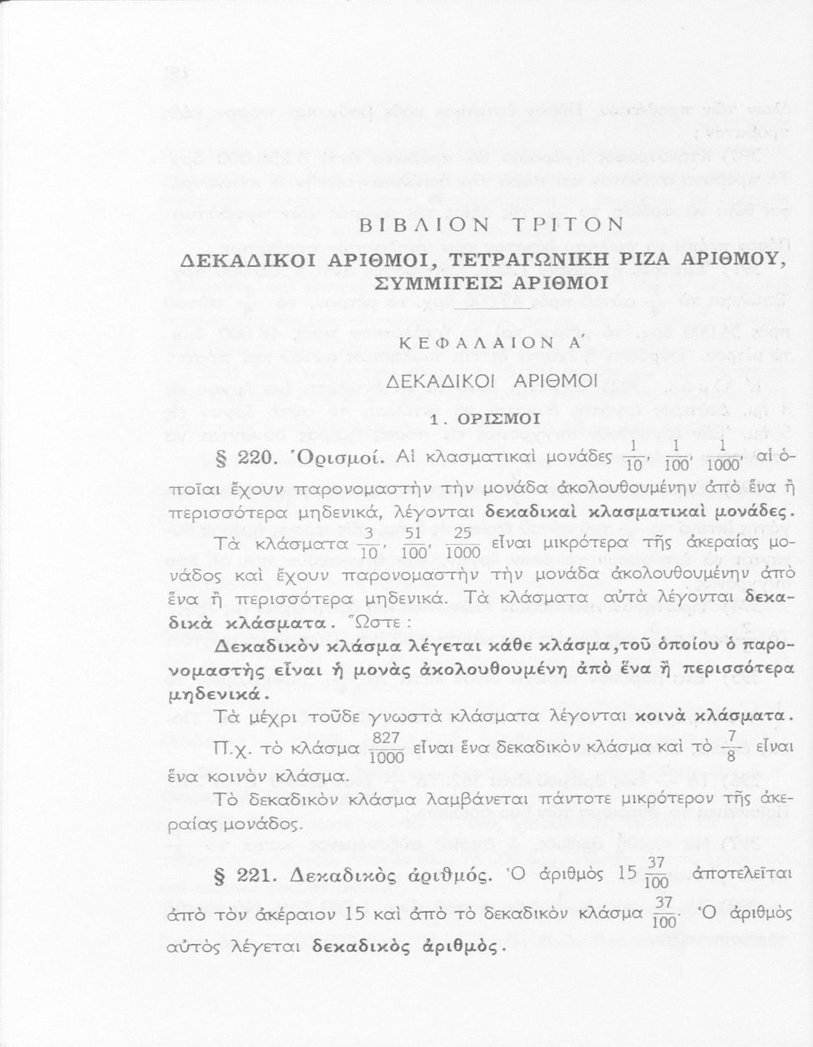 Σχολικό εγχειρίδιο Αριθμητικής για τα Γυμνάσια και Αστικά Σχολεία που είναι χωρισμένο σε θεωρία και ασκήσεις με έντονο επιχειρηματικό προσανατολισμό. Περιλαμβάνει στοιχεία Θεωρητικής Αριθμητικής.