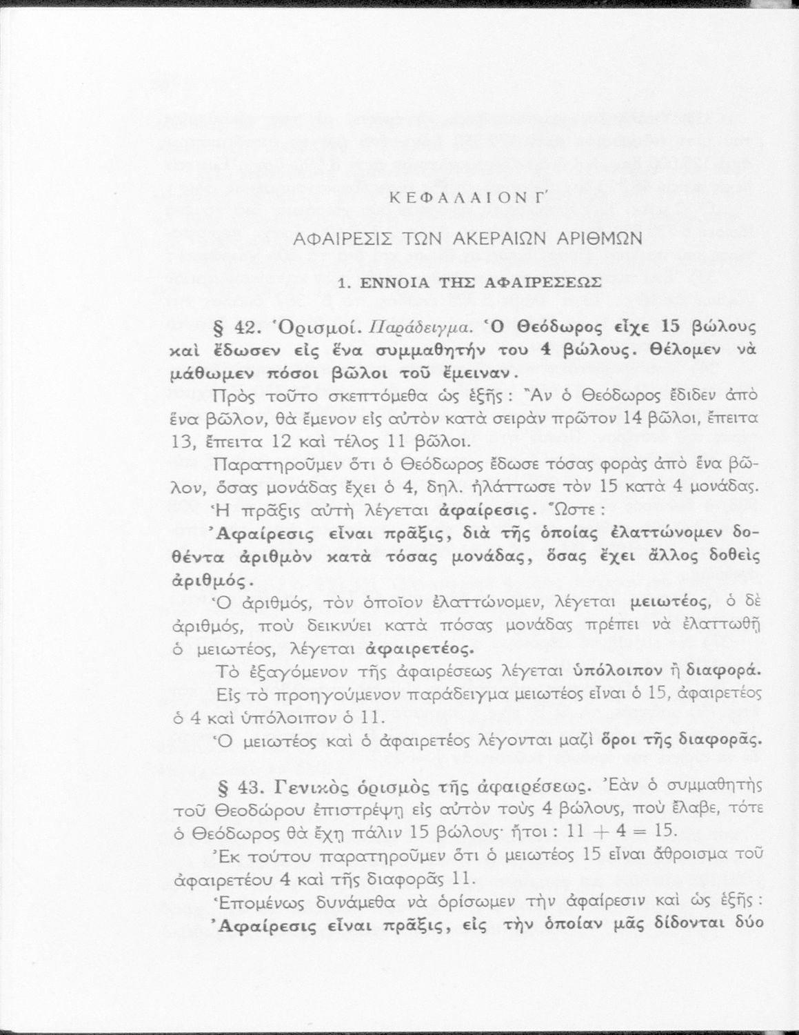 Σχολικό εγχειρίδιο Αριθμητικής Γυμνασίου που εστιάζει στις αριθμητικές πράξεις, τα κλάσματα και τις μεθόδους και είναι χωρισμένο σε θεωρία και ασκήσεις με έντονο επιχειρηματικό προσανατολισμό. Περιλαμβάνει στοιχεία Θεωρητικής Αριθμητικής.