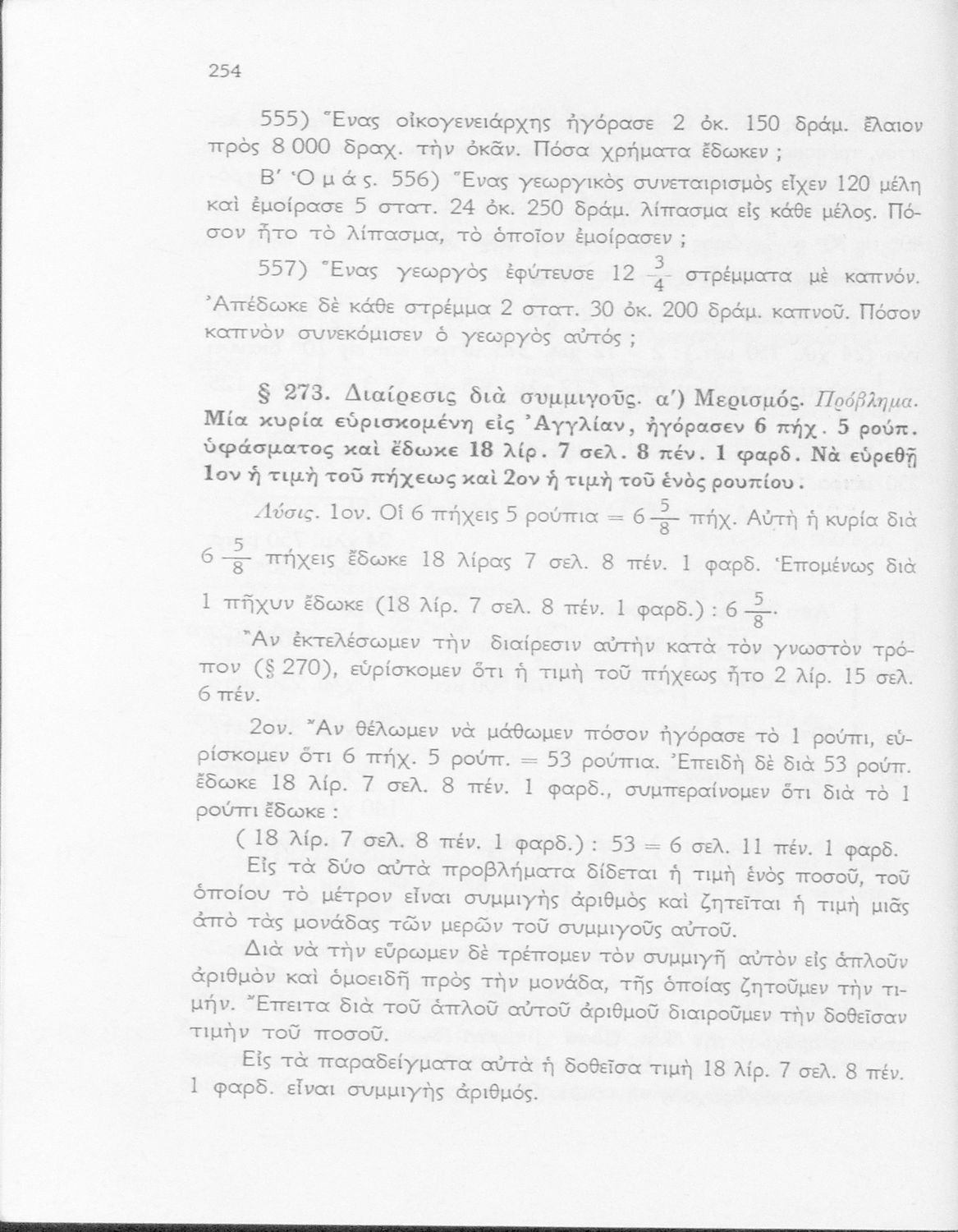 Σχολικό εγχειρίδιο Αριθμητικής Γυμνασίου που εστιάζει στις αριθμητικές πράξεις, τα κλάσματα και τις μεθόδους και είναι χωρισμένο σε θεωρία και ασκήσεις με έντονο επιχειρηματικό προσανατολισμό. Περιλαμβάνει στοιχεία Θεωρητικής Αριθμητικής.
