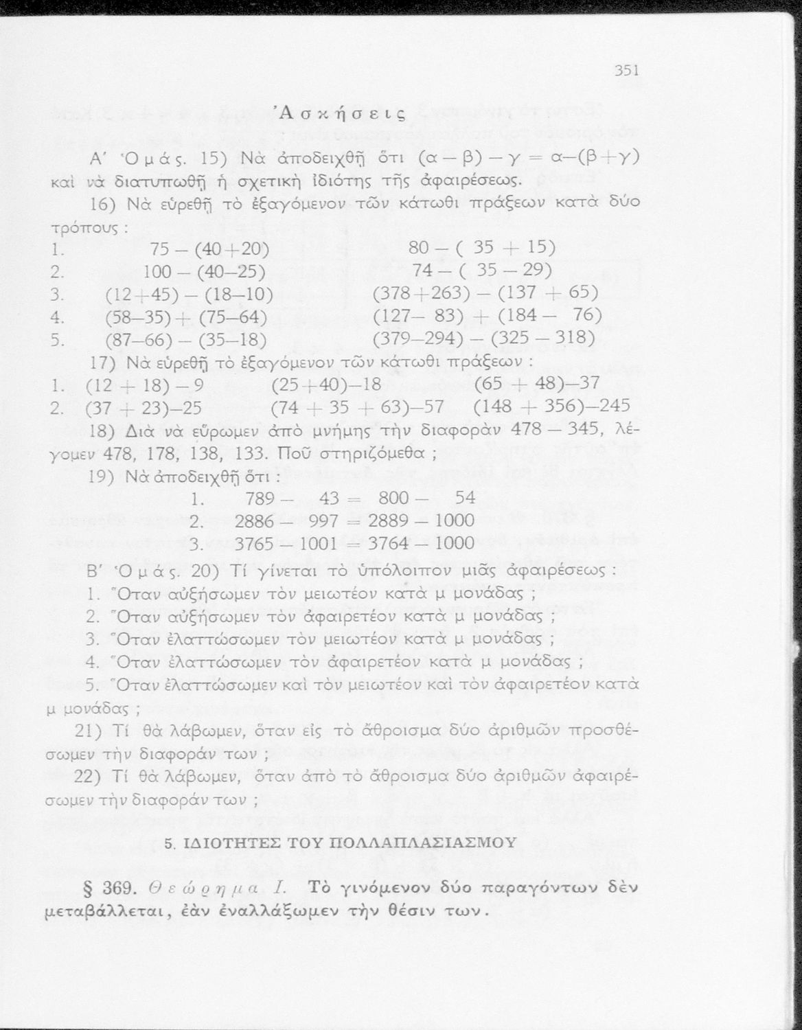 Σχολικό εγχειρίδιο Αριθμητικής Γυμνασίου που εστιάζει στις αριθμητικές πράξεις, τα κλάσματα και τις μεθόδους και είναι χωρισμένο σε θεωρία και ασκήσεις με έντονο επιχειρηματικό προσανατολισμό. Περιλαμβάνει στοιχεία Θεωρητικής Αριθμητικής.