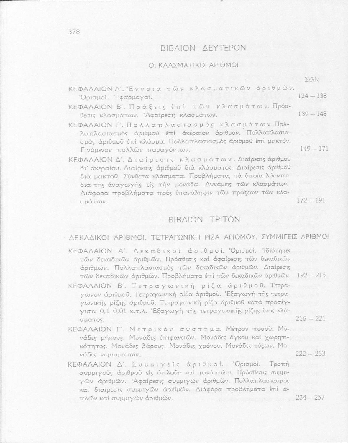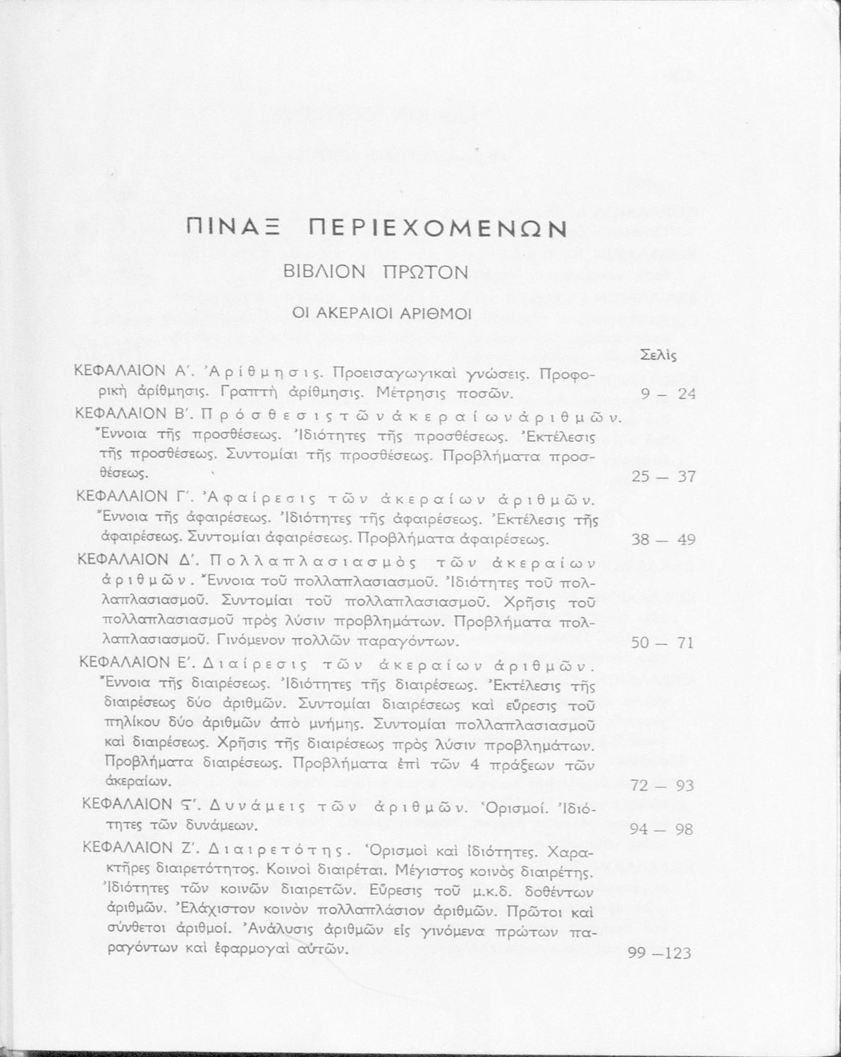 Σχολικό εγχειρίδιο Αριθμητικής Γυμνασίου που εστιάζει στις αριθμητικές πράξεις, τα κλάσματα και τις μεθόδους και είναι χωρισμένο σε θεωρία και ασκήσεις με έντονο επιχειρηματικό προσανατολισμό. Περιλαμβάνει στοιχεία Θεωρητικής Αριθμητικής.
