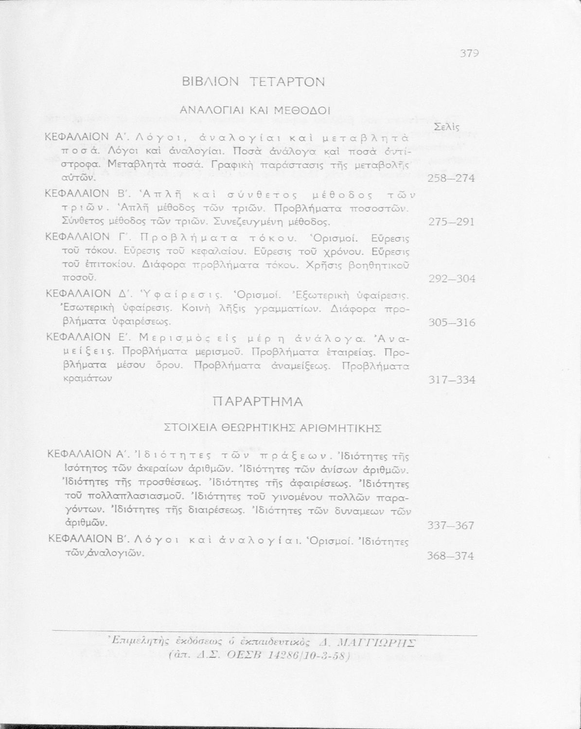 Σχολικό εγχειρίδιο Αριθμητικής για τα Γυμνάσια και τα Αστικά σχολεία που είναι χωρισμένο σε θεωρία και ασκήσεις με έντονο επιχειρηματικό προσανατολισμό. Περιλαμβάνει στοιχεία Θεωρητικής Αριθμητικής.