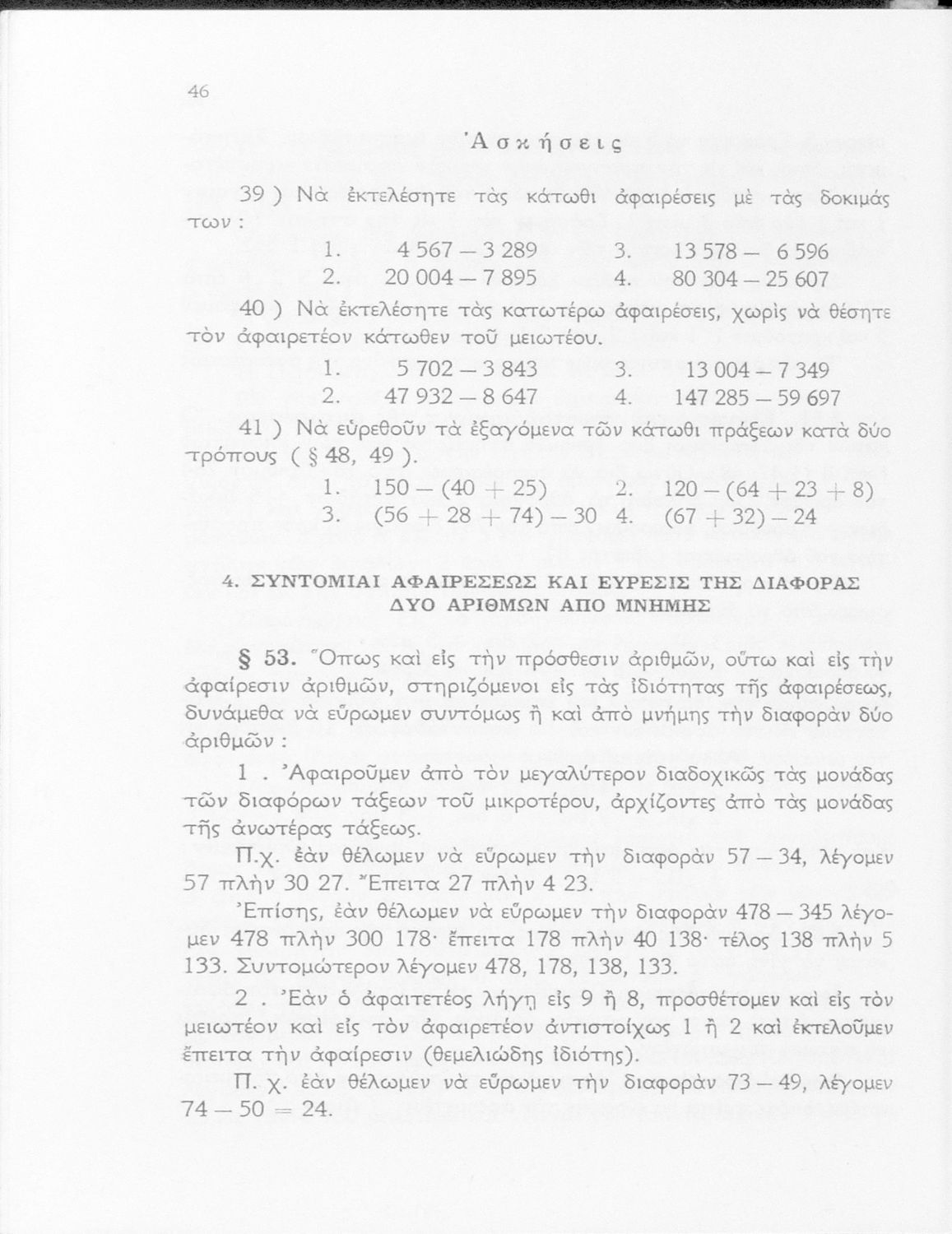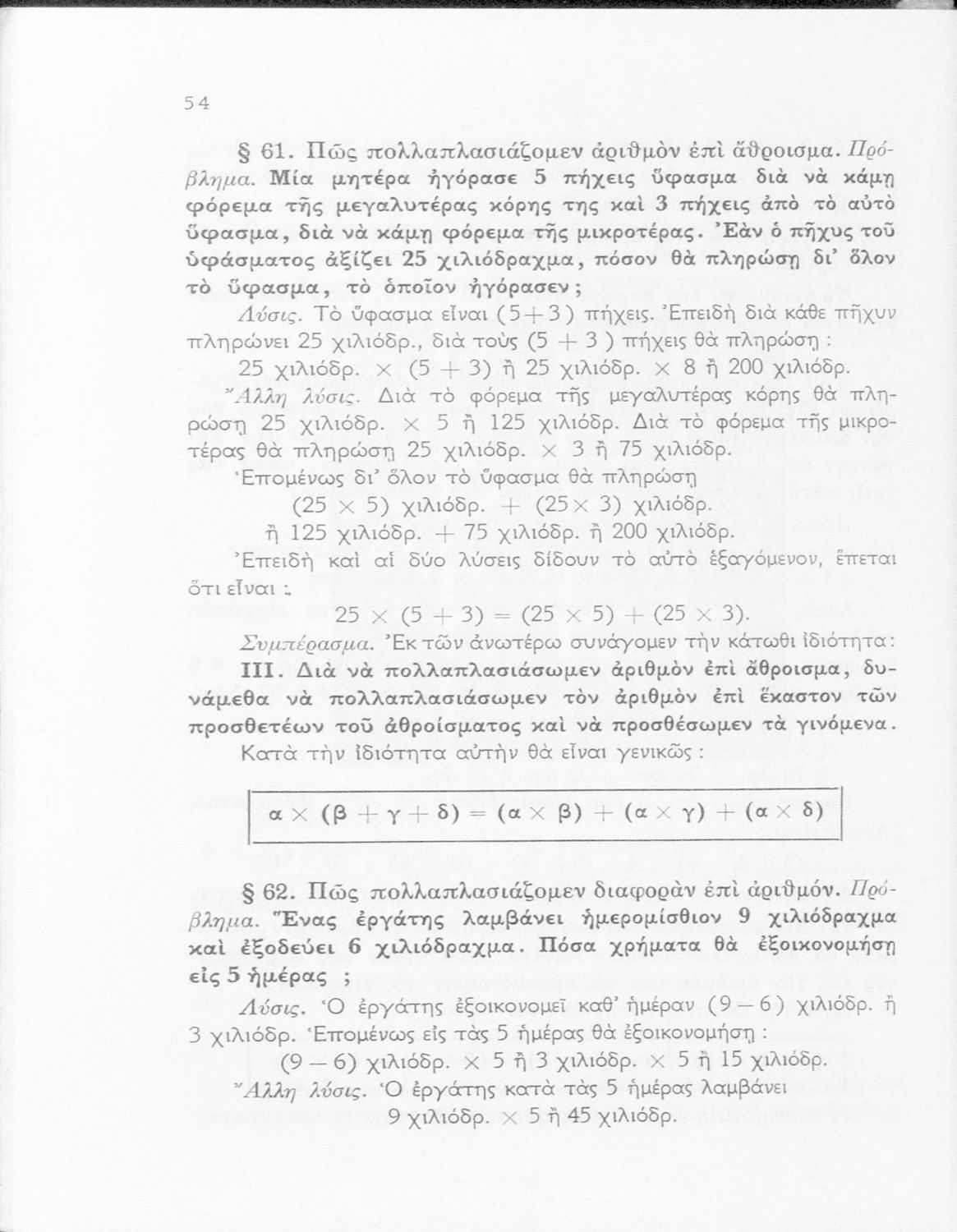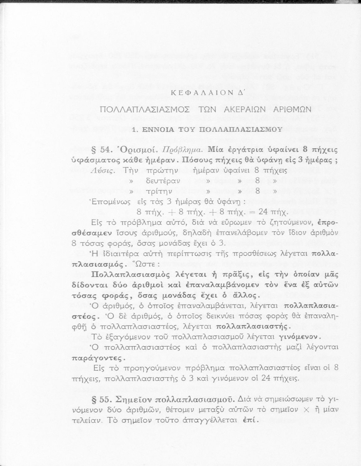 Σχολικό εγχειρίδιο Αριθμητικής Γυμνασίου που εστιάζει στις αριθμητικές πράξεις, τα κλάσματα και τις μεθόδους και είναι χωρισμένο σε θεωρία και ασκήσεις με έντονο επιχειρηματικό προσανατολισμό. Περιλαμβάνει στοιχεία Θεωρητικής Αριθμητικής.