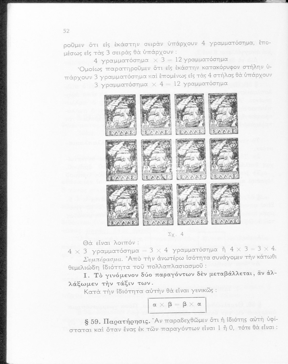 Κωδικός αναγνώρισης: 01-18287 Τίτλος: Αριθμητική δια τας κατωτέρας τάξεις των Γυμνασίων Συγγραφέας: Π. Τόγκας, Θ. Πασσάς, Ν. Νικολάου Μέγεθος και υπόστρωμα: Σχολικό εγχειρίδιο, 20εκ., σκληρό εξώφυλλο, 379 σελίδες. Σκίτσα (ασπρόμαυρα). |
