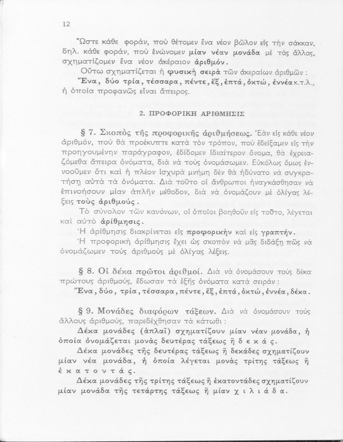 Σχολικό εγχειρίδιο Αριθμητικής Γυμνασίου που εστιάζει στις αριθμητικές πράξεις, τα κλάσματα και τις μεθόδους και είναι χωρισμένο σε θεωρία και ασκήσεις με έντονο επιχειρηματικό προσανατολισμό. Περιλαμβάνει στοιχεία Θεωρητικής Αριθμητικής.