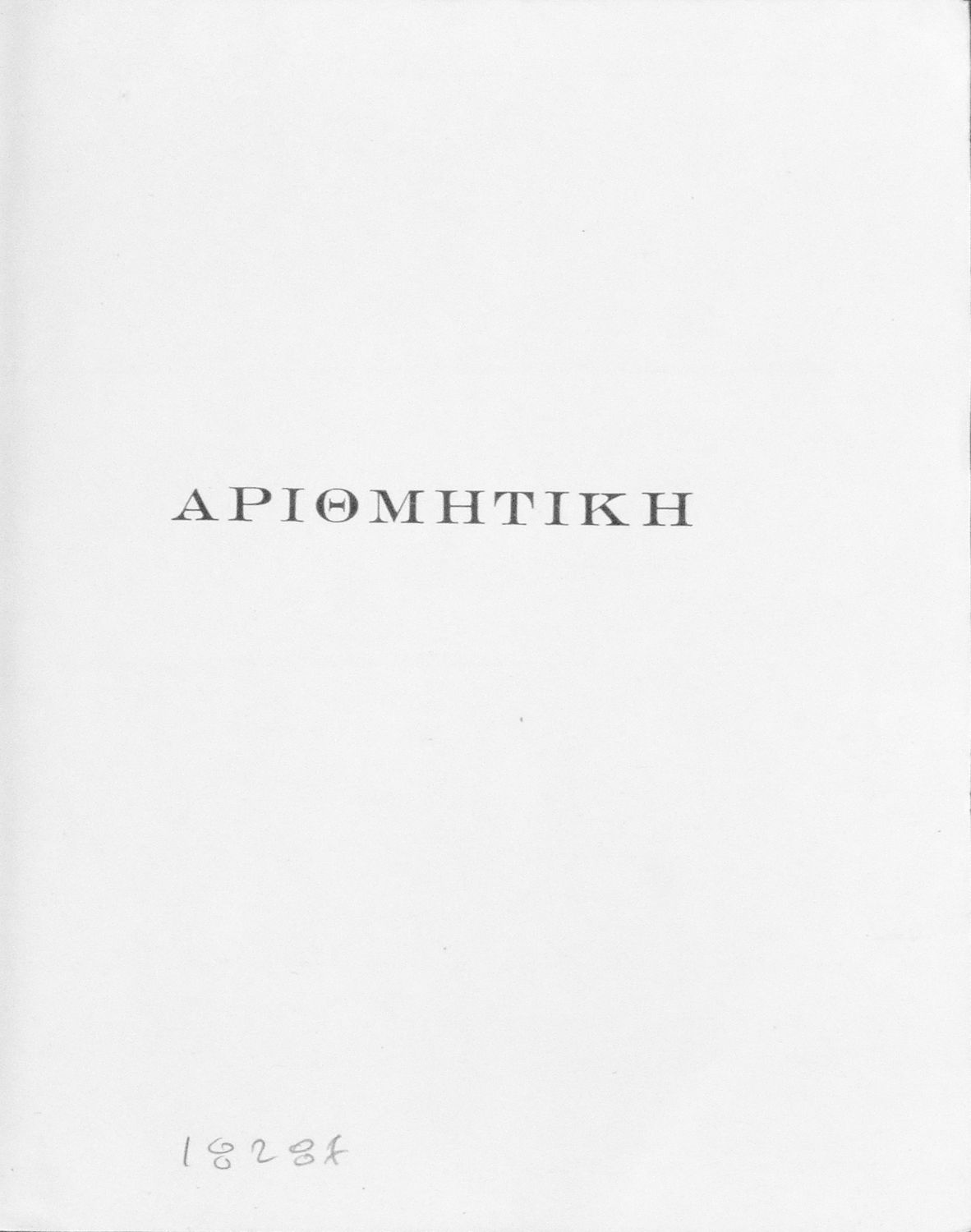 Τίτλος: Αριθμητική δια τας κατωτέρας τάξεις των Γυμνασίων