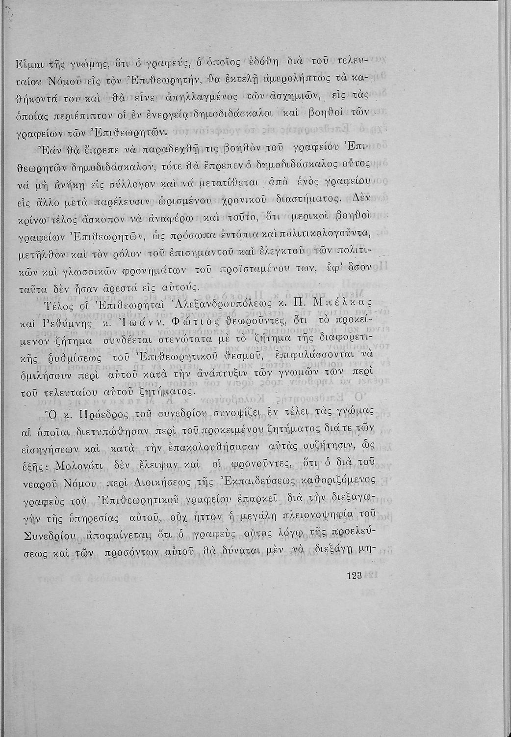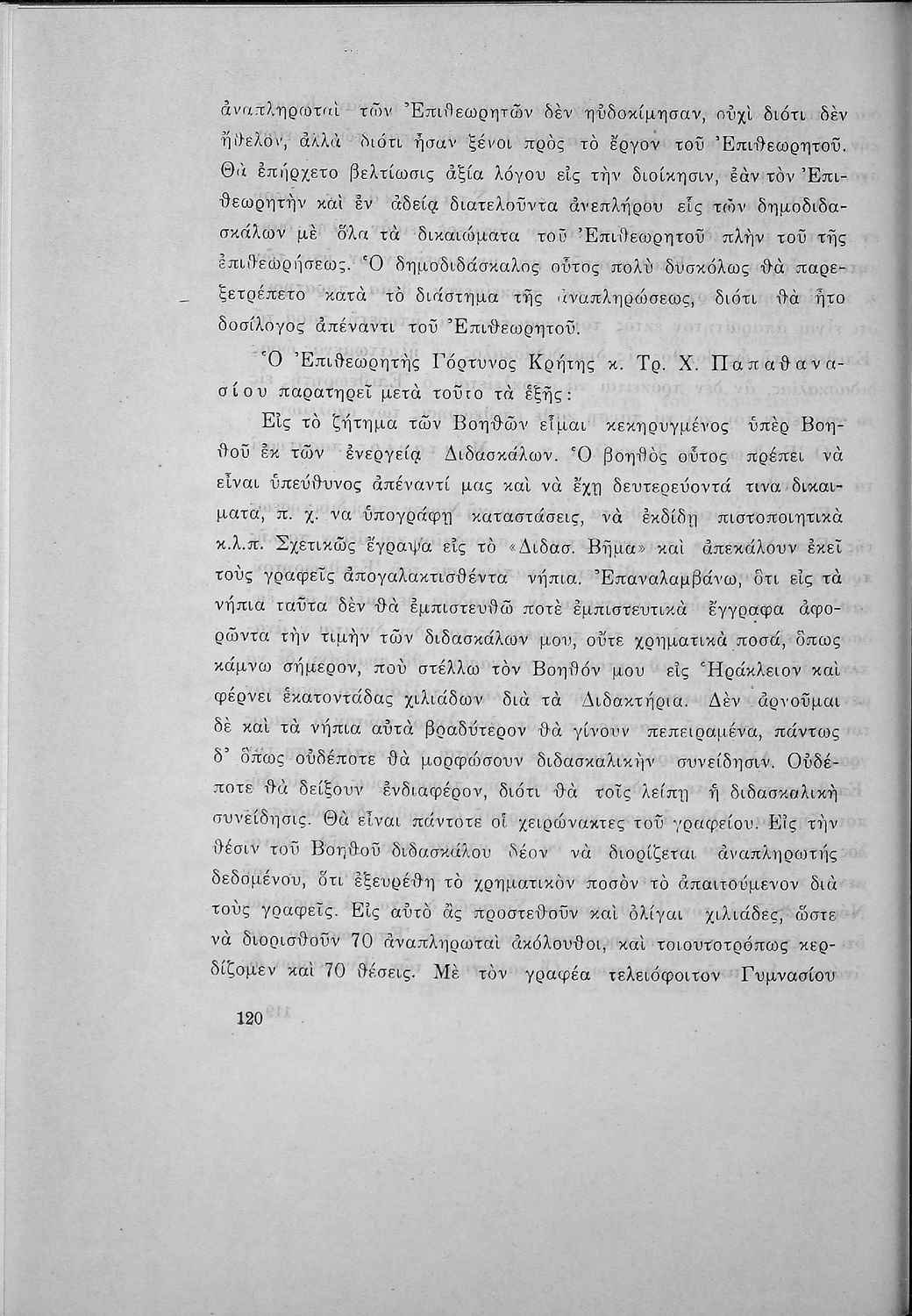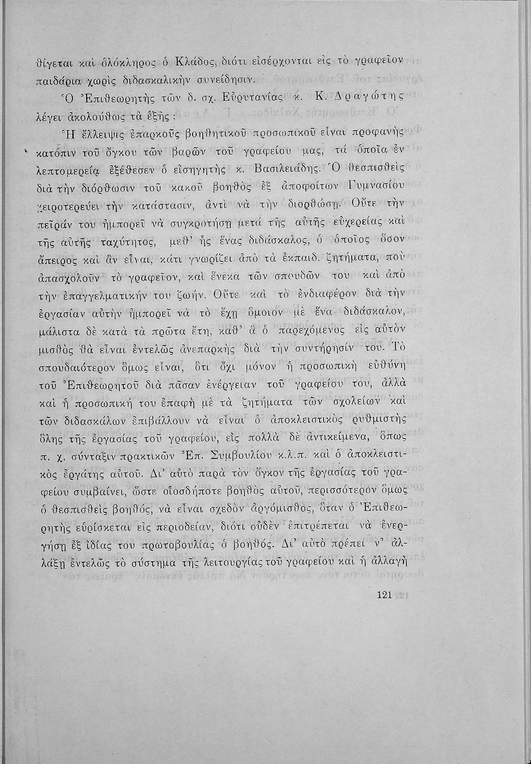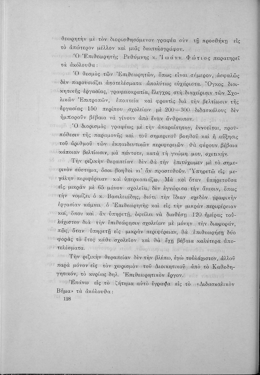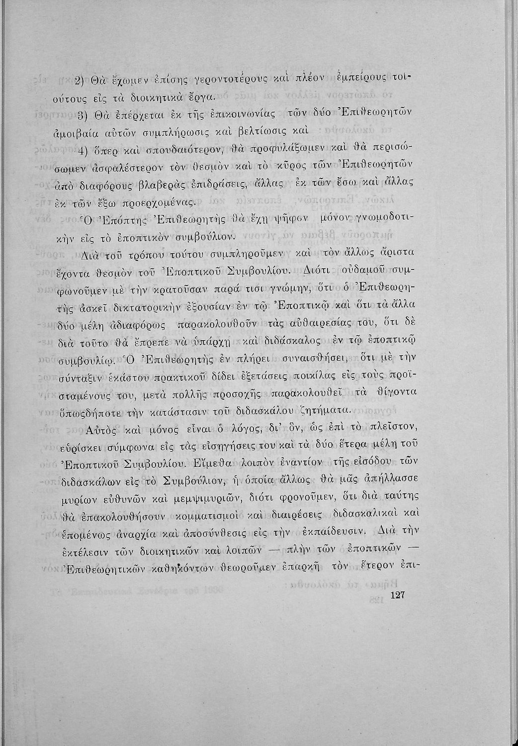 Περιέχει τα πρακτικά του συνεδρίου των επιθεωρητών Δημοτικής Εκπαιδεύσεως.