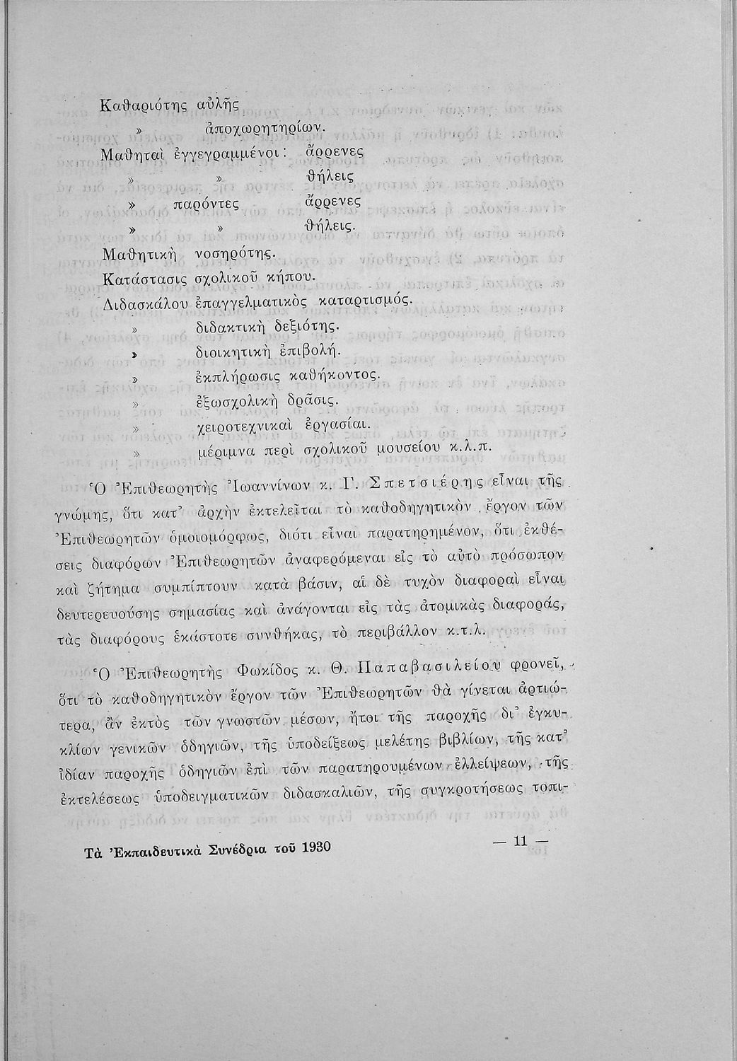 Περιέχει τα πρακτικά του συνεδρίου των επιθεωρητών Δημοτικής Εκπαιδεύσεως.