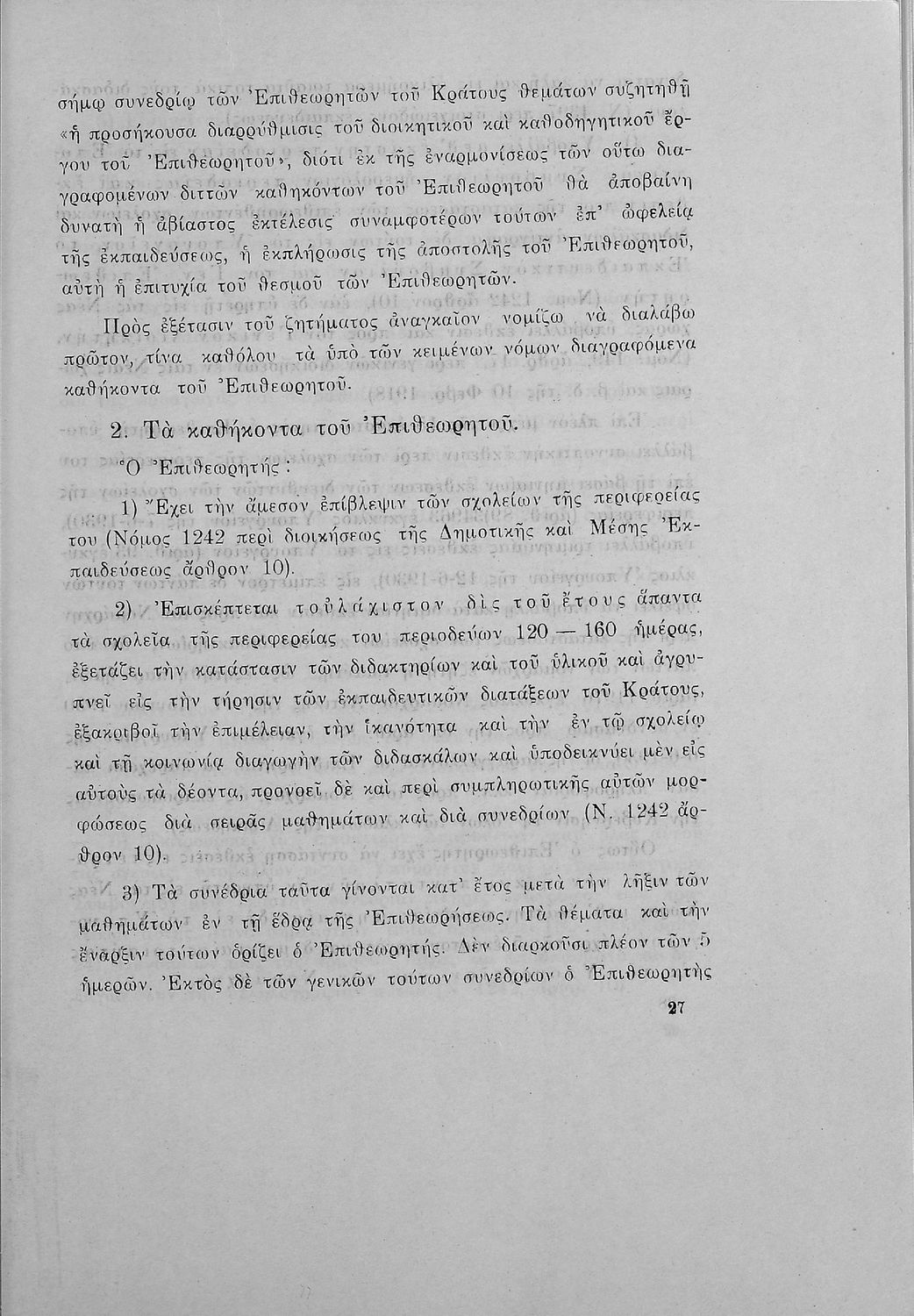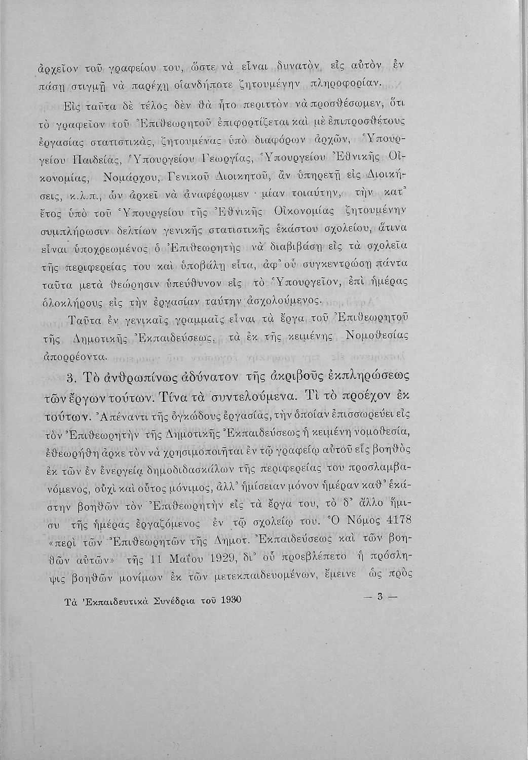 Περιέχει τα πρακτικά του συνεδρίου των επιθεωρητών Δημοτικής Εκπαιδεύσεως.