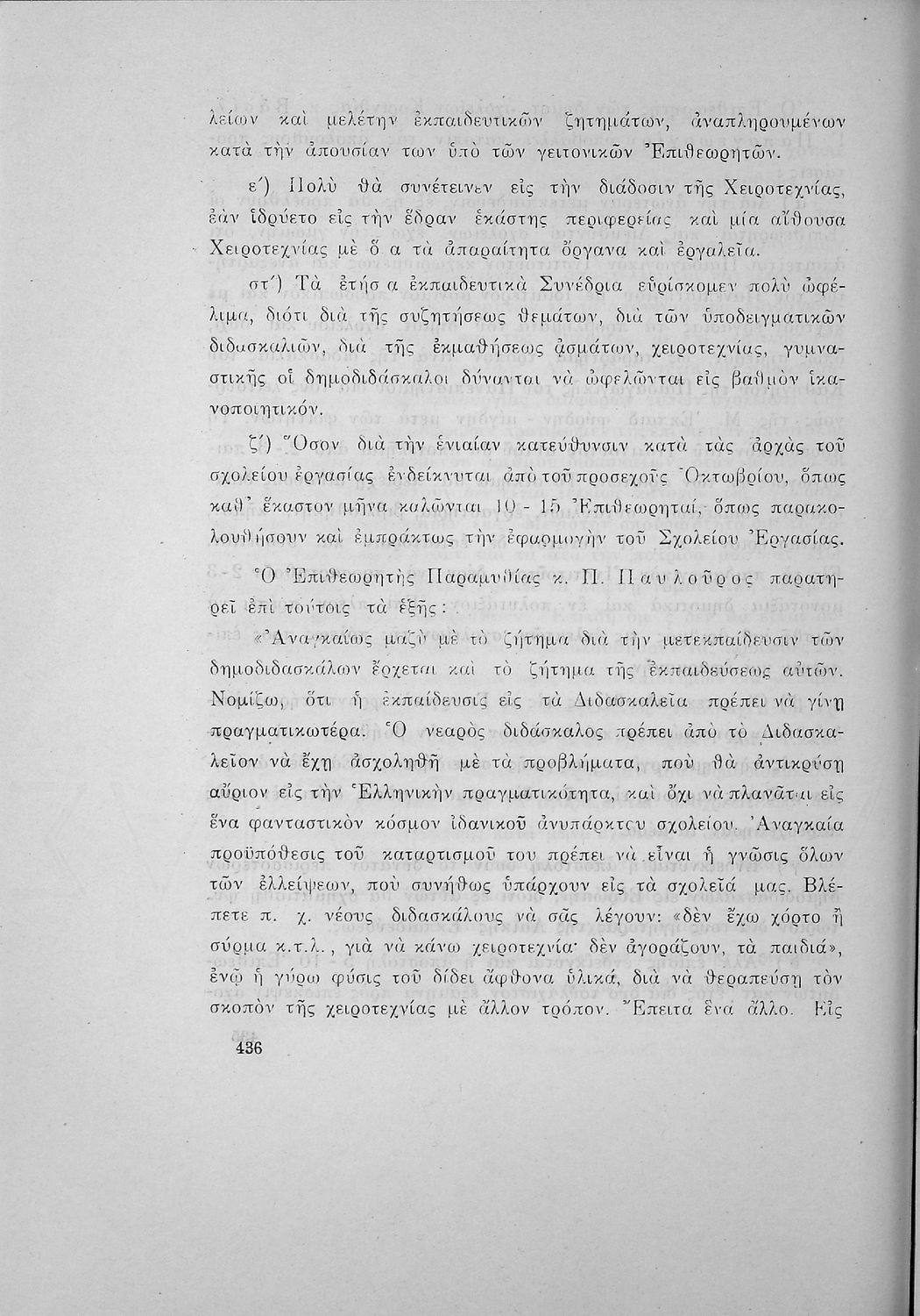 Περιέχει τα πρακτικά του συνεδρίου των επιθεωρητών Δημοτικής Εκπαιδεύσεως.