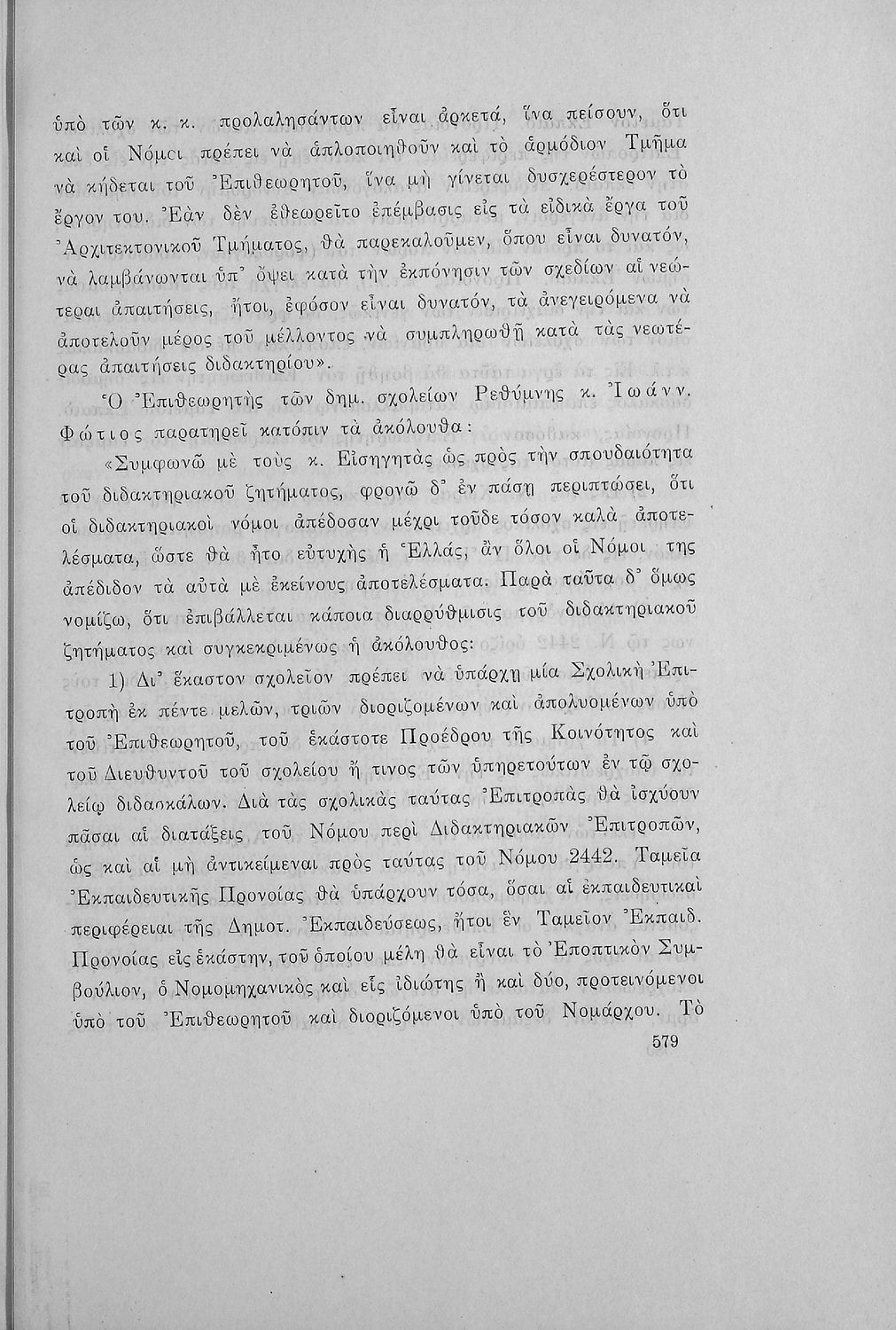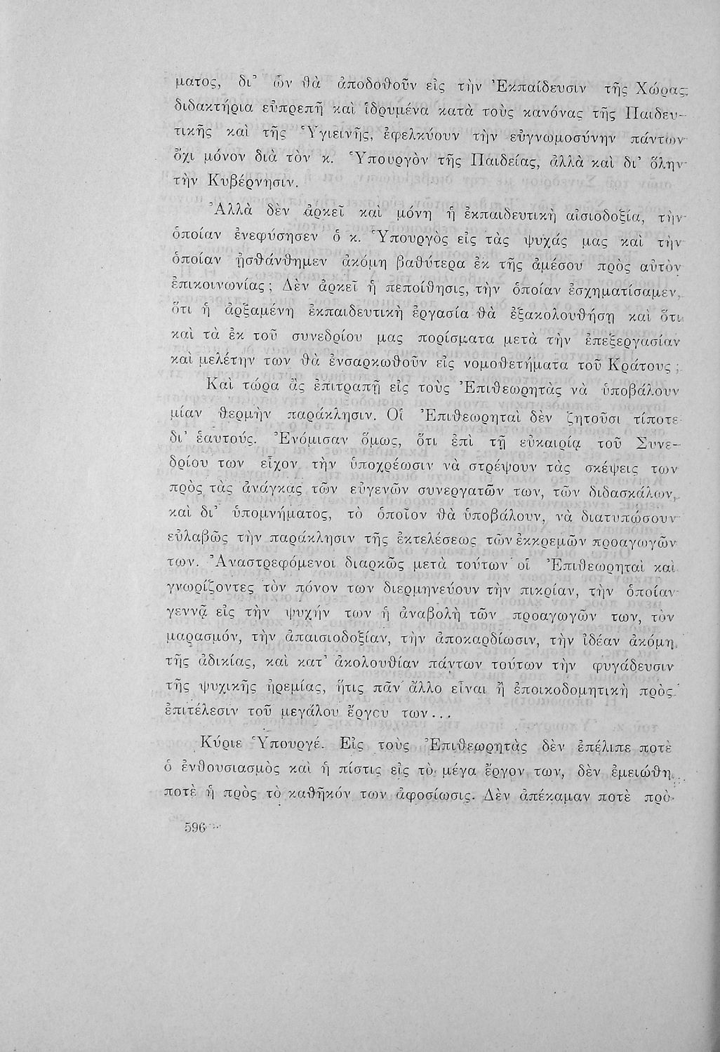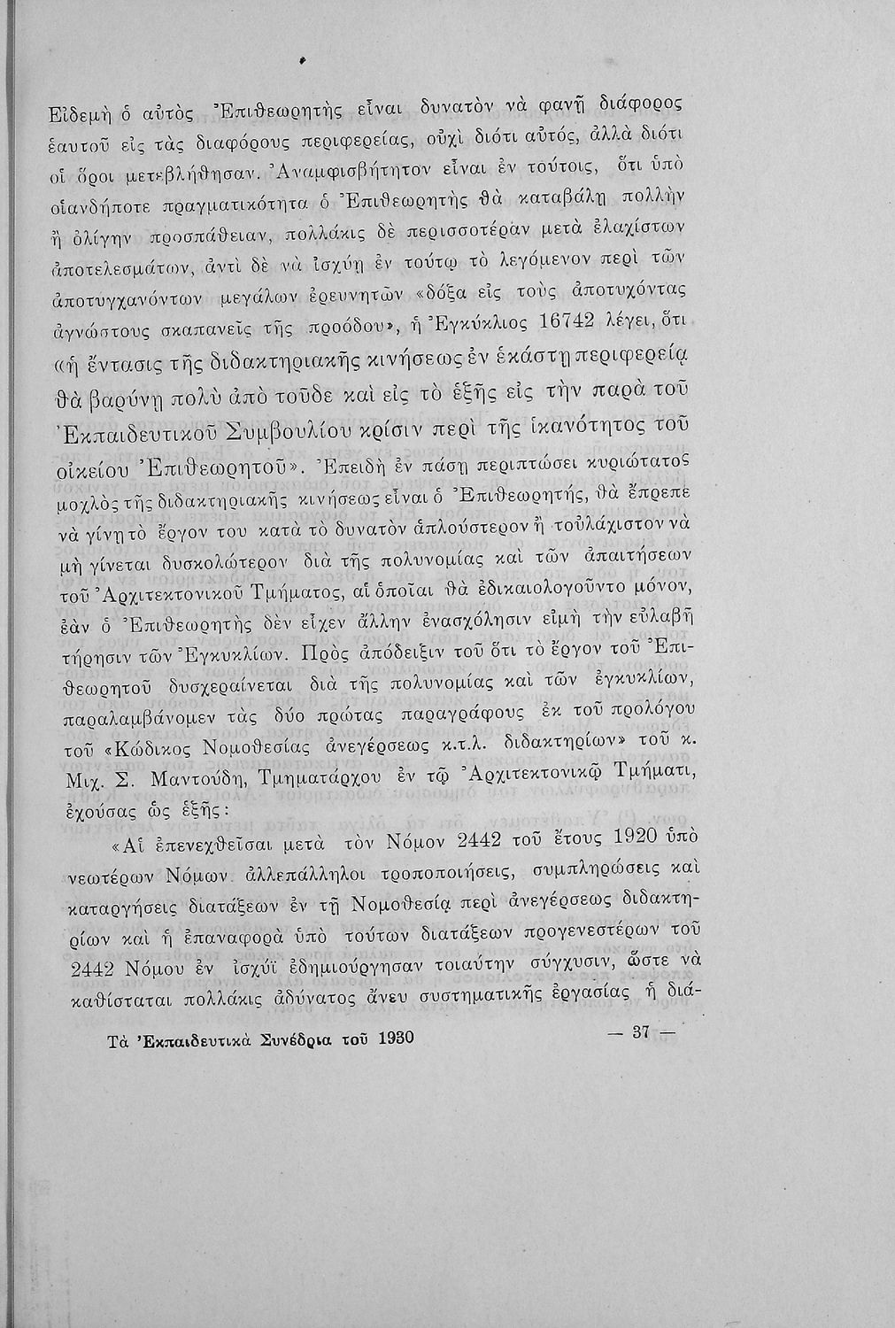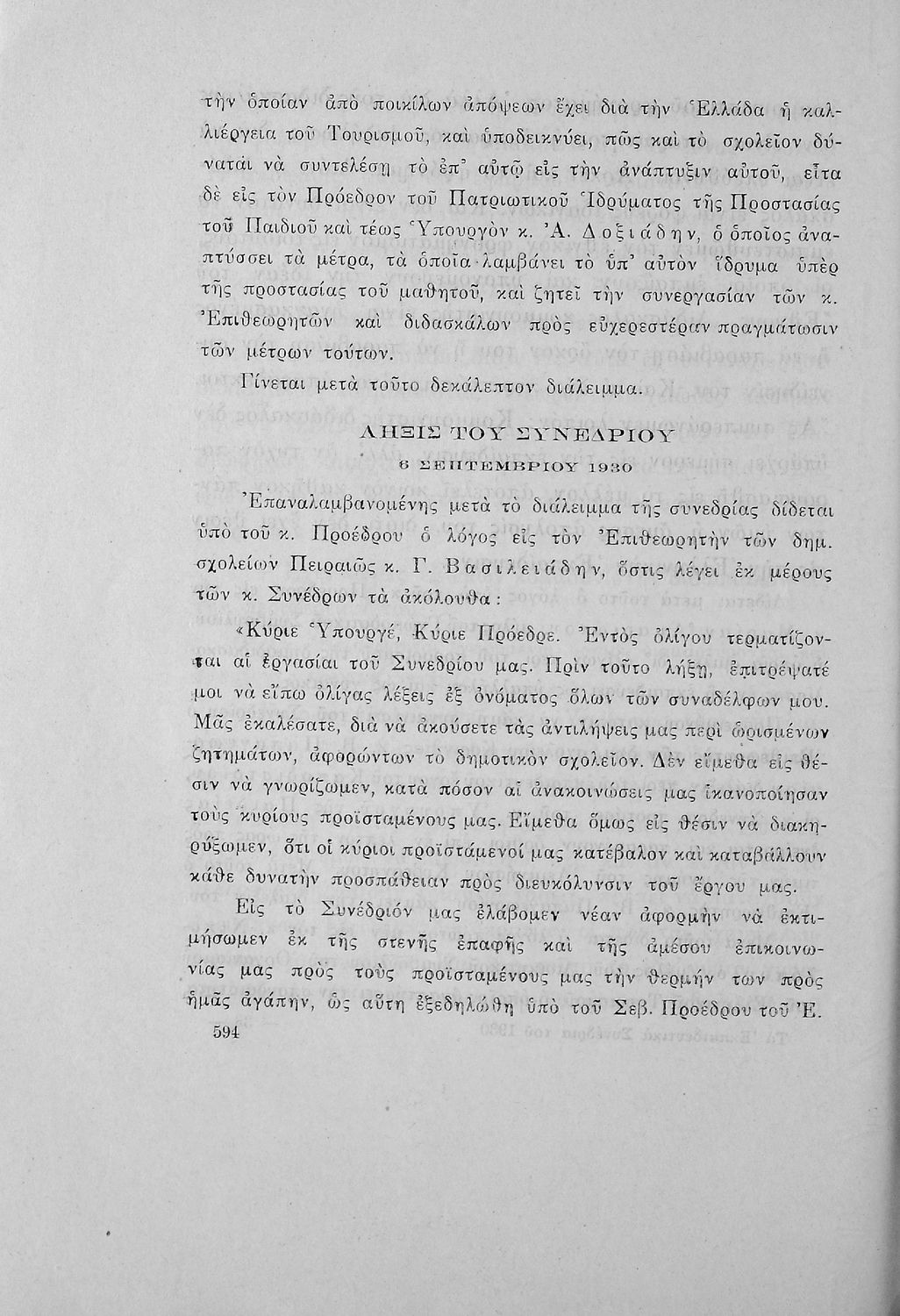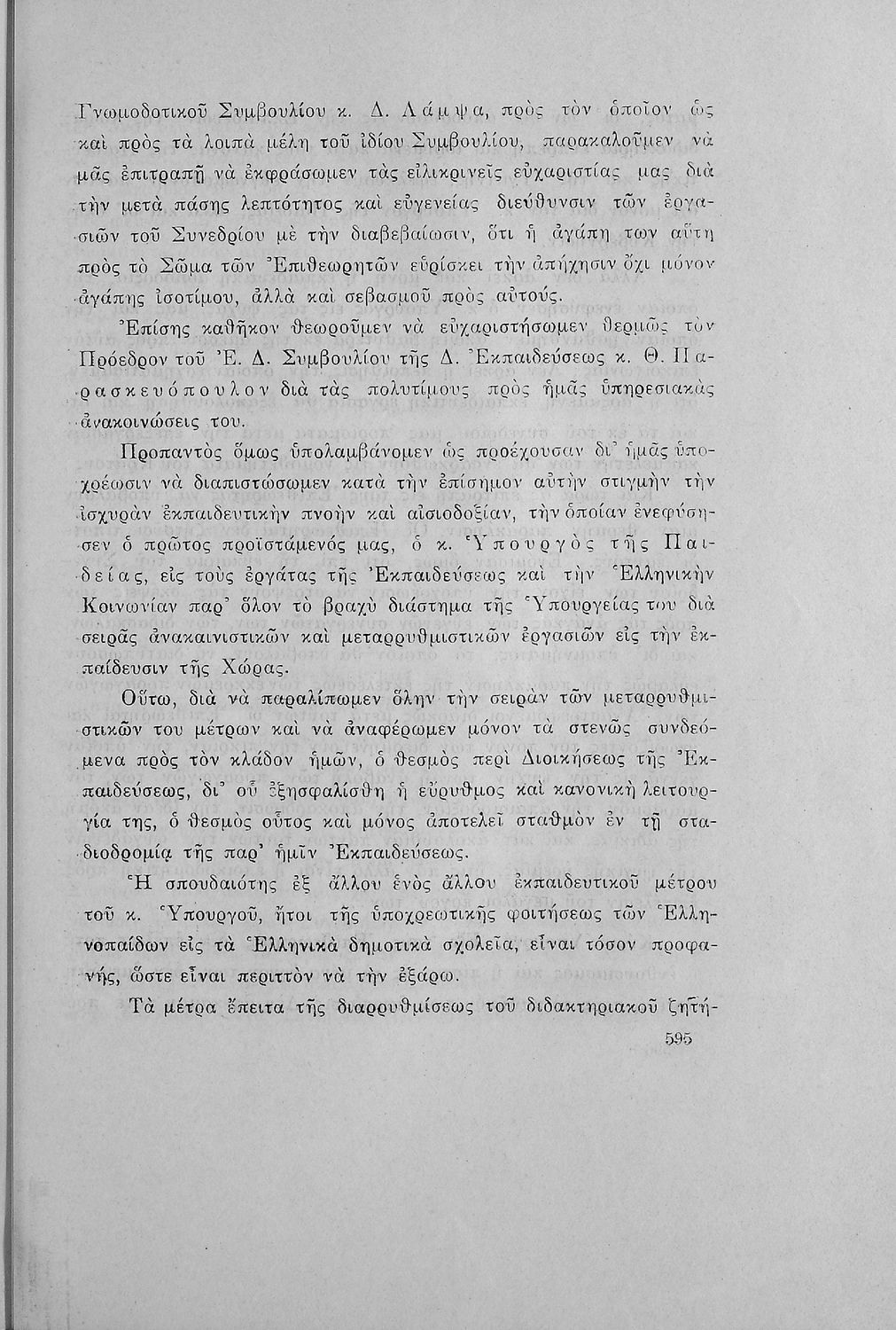 Περιέχει τα πρακτικά του συνεδρίου των επιθεωρητών Δημοτικής Εκπαιδεύσεως.