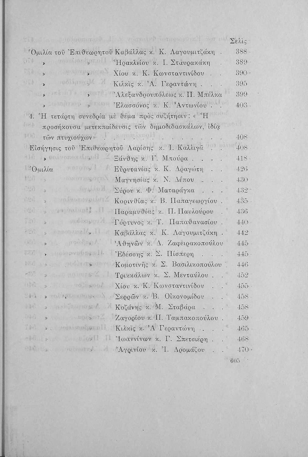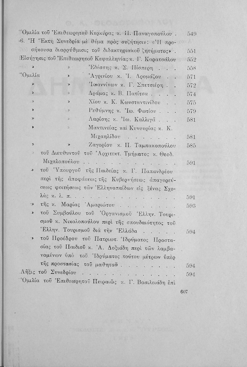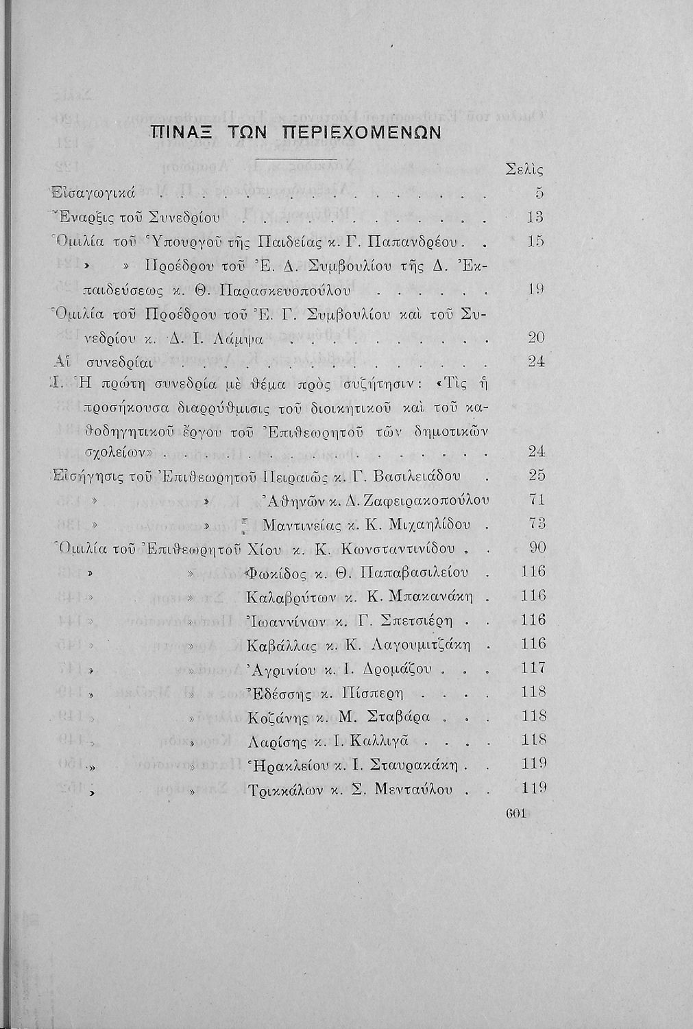 Περιέχει τα πρακτικά του συνεδρίου των επιθεωρητών Δημοτικής Εκπαιδεύσεως.