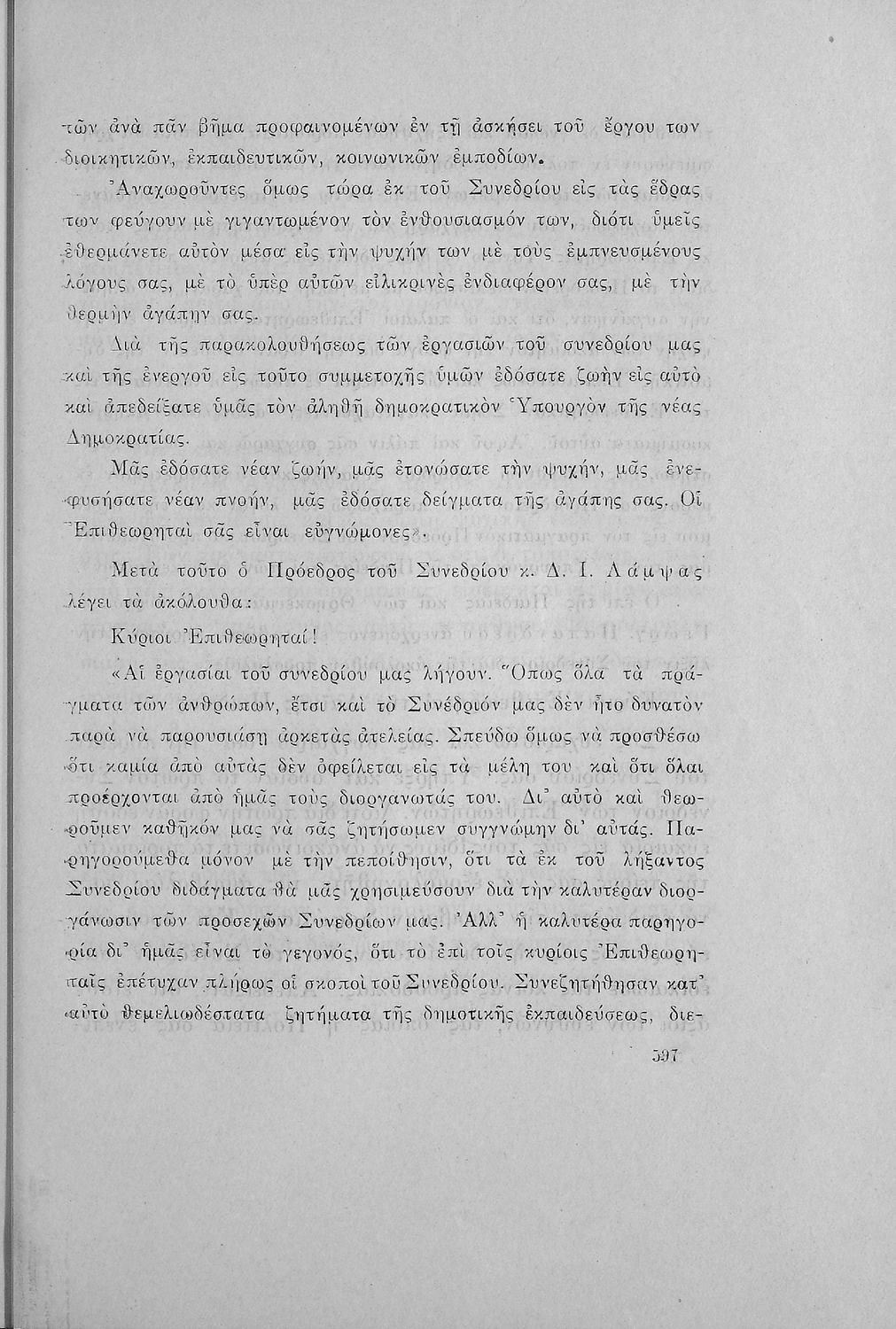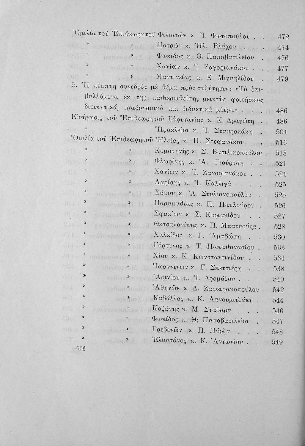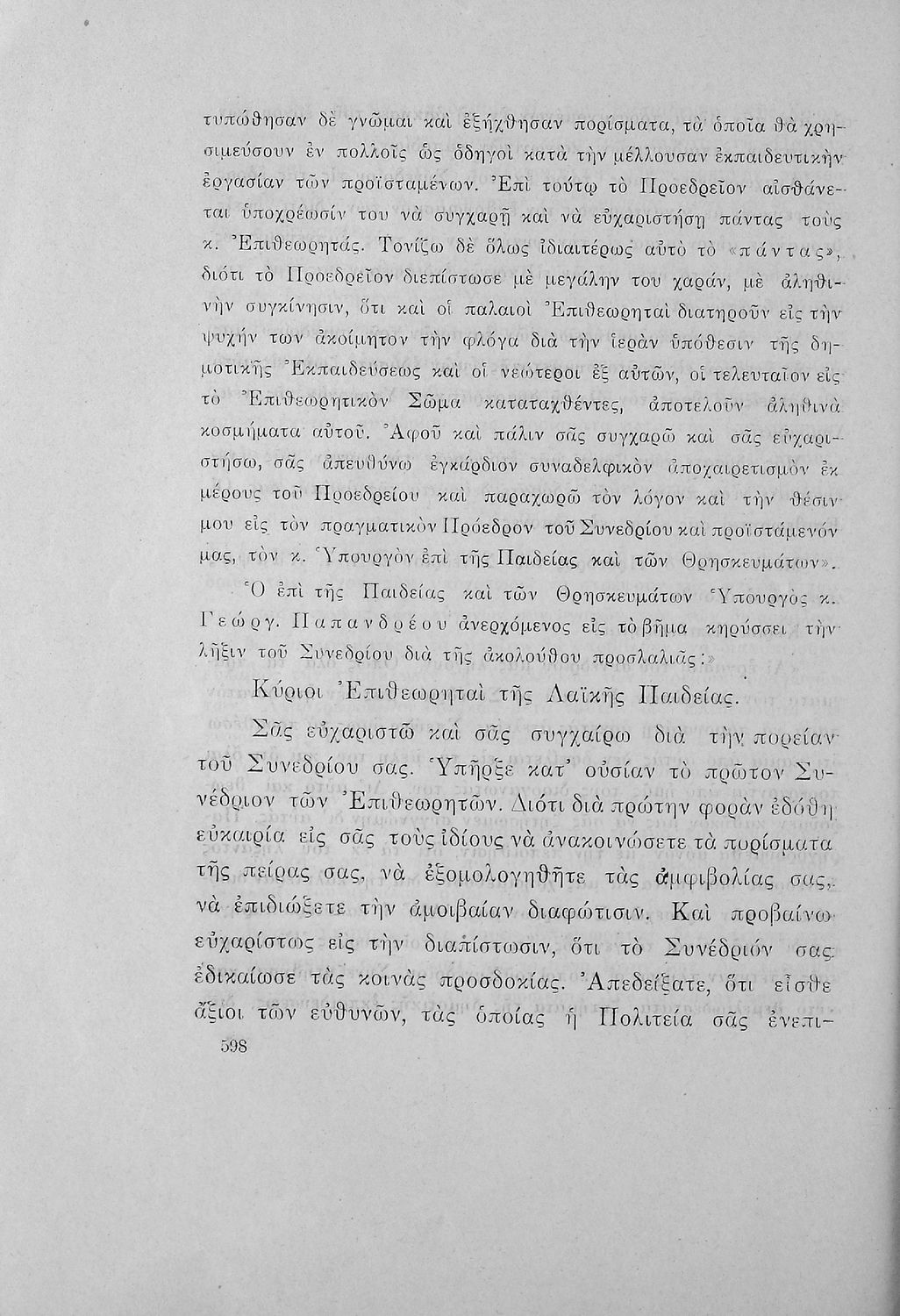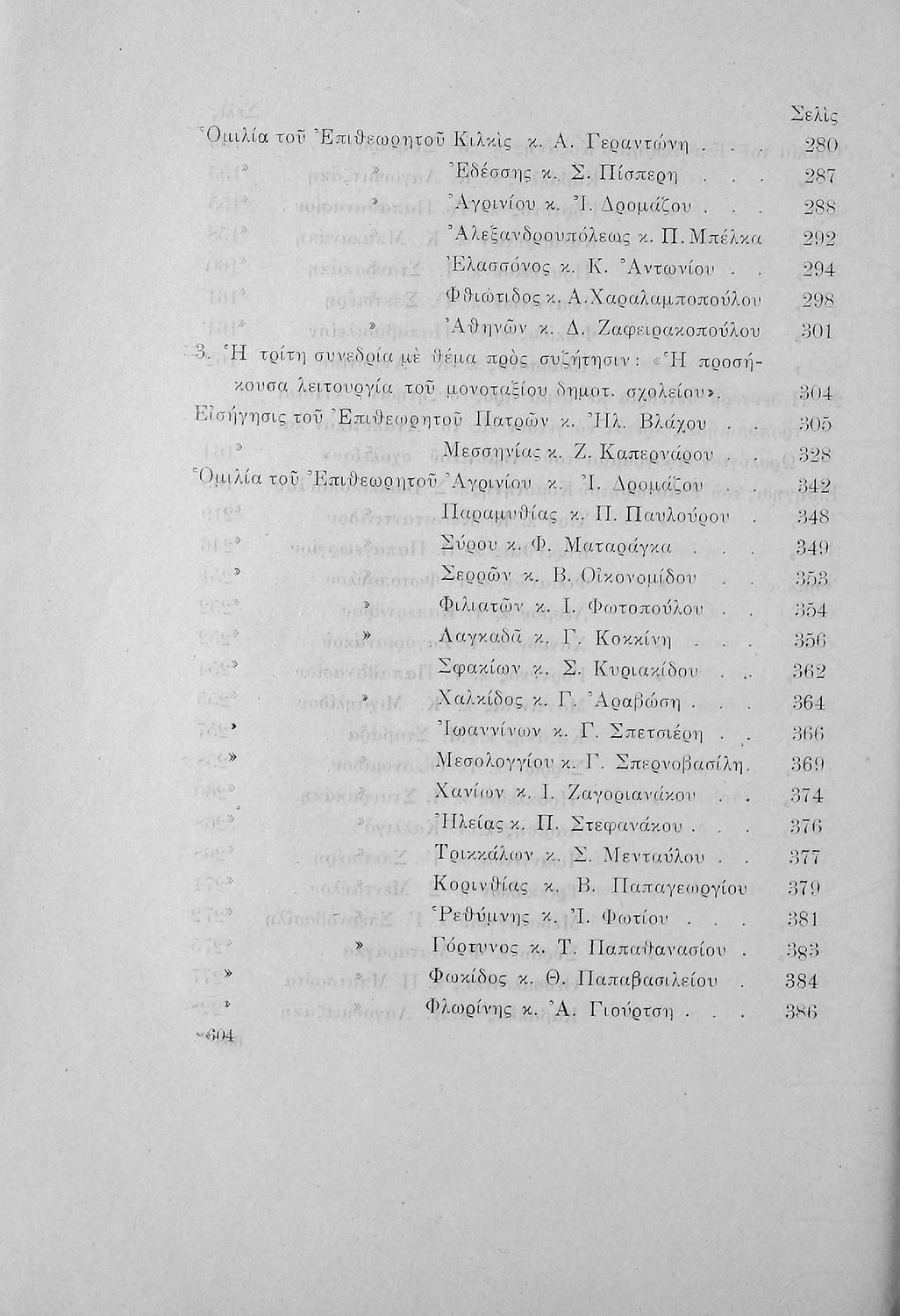 Περιέχει τα πρακτικά του συνεδρίου των επιθεωρητών Δημοτικής Εκπαιδεύσεως.