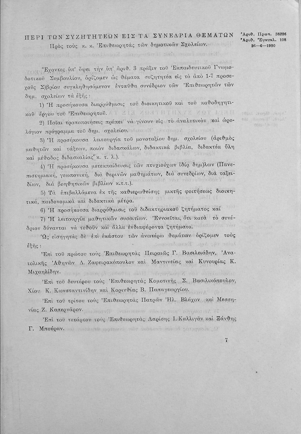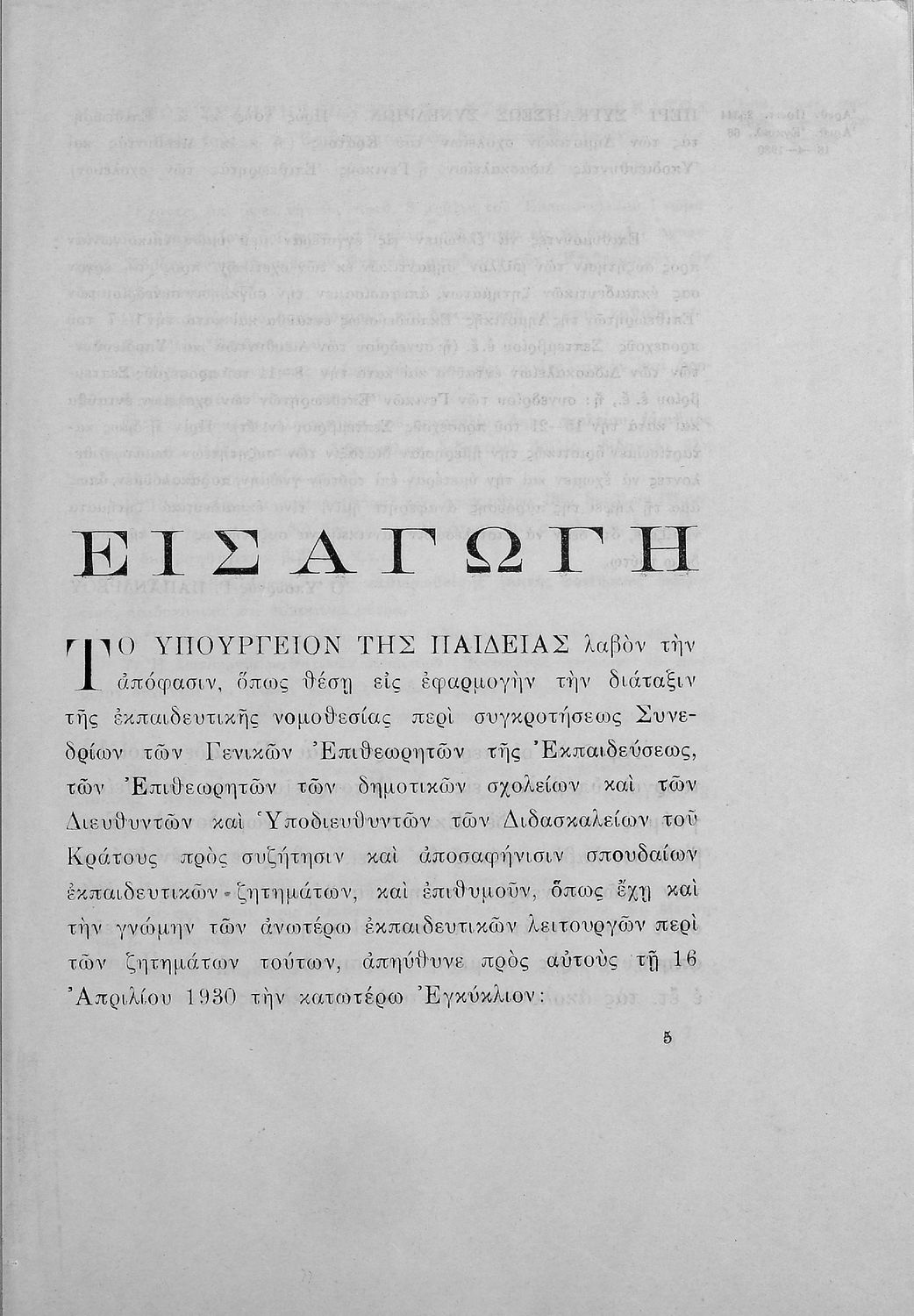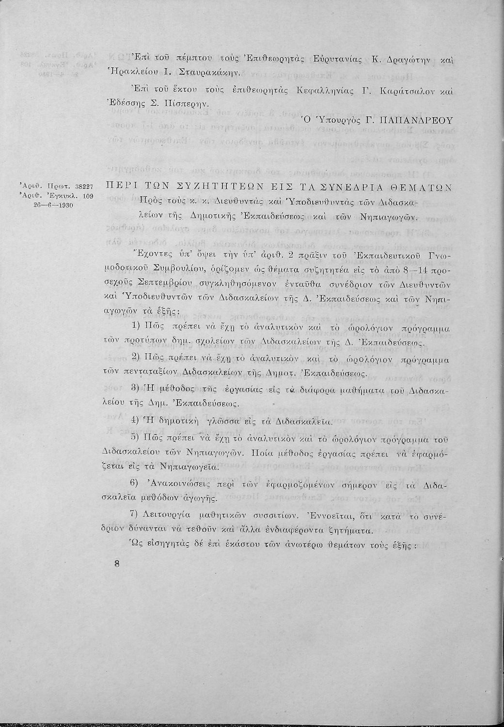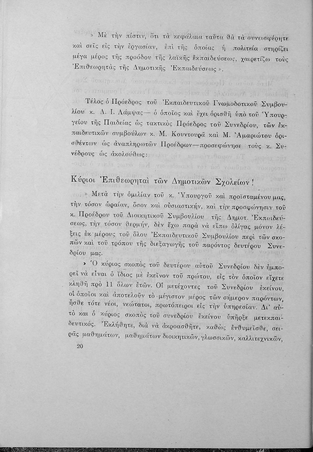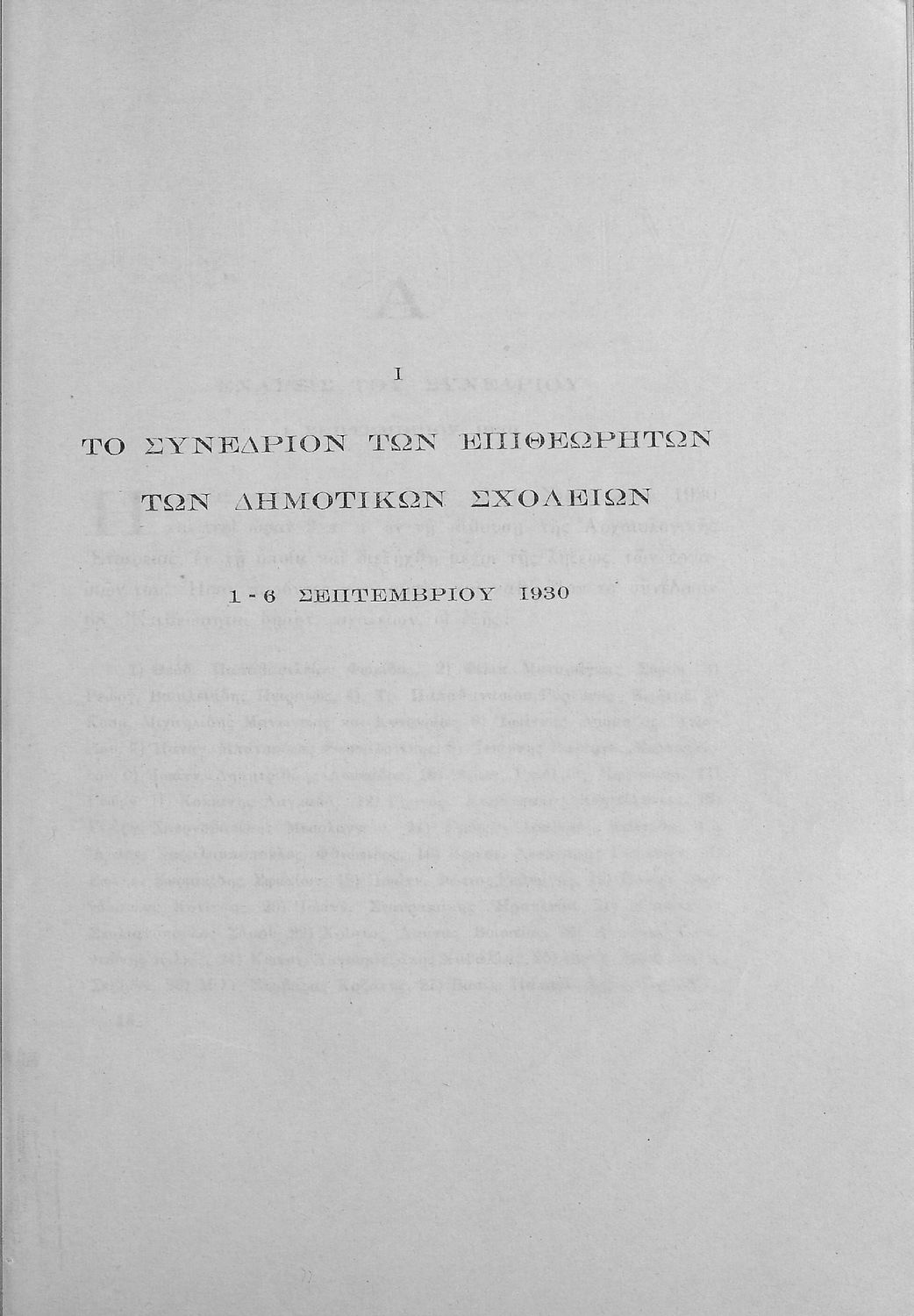 Περιέχει τα πρακτικά του συνεδρίου των επιθεωρητών Δημοτικής Εκπαιδεύσεως.