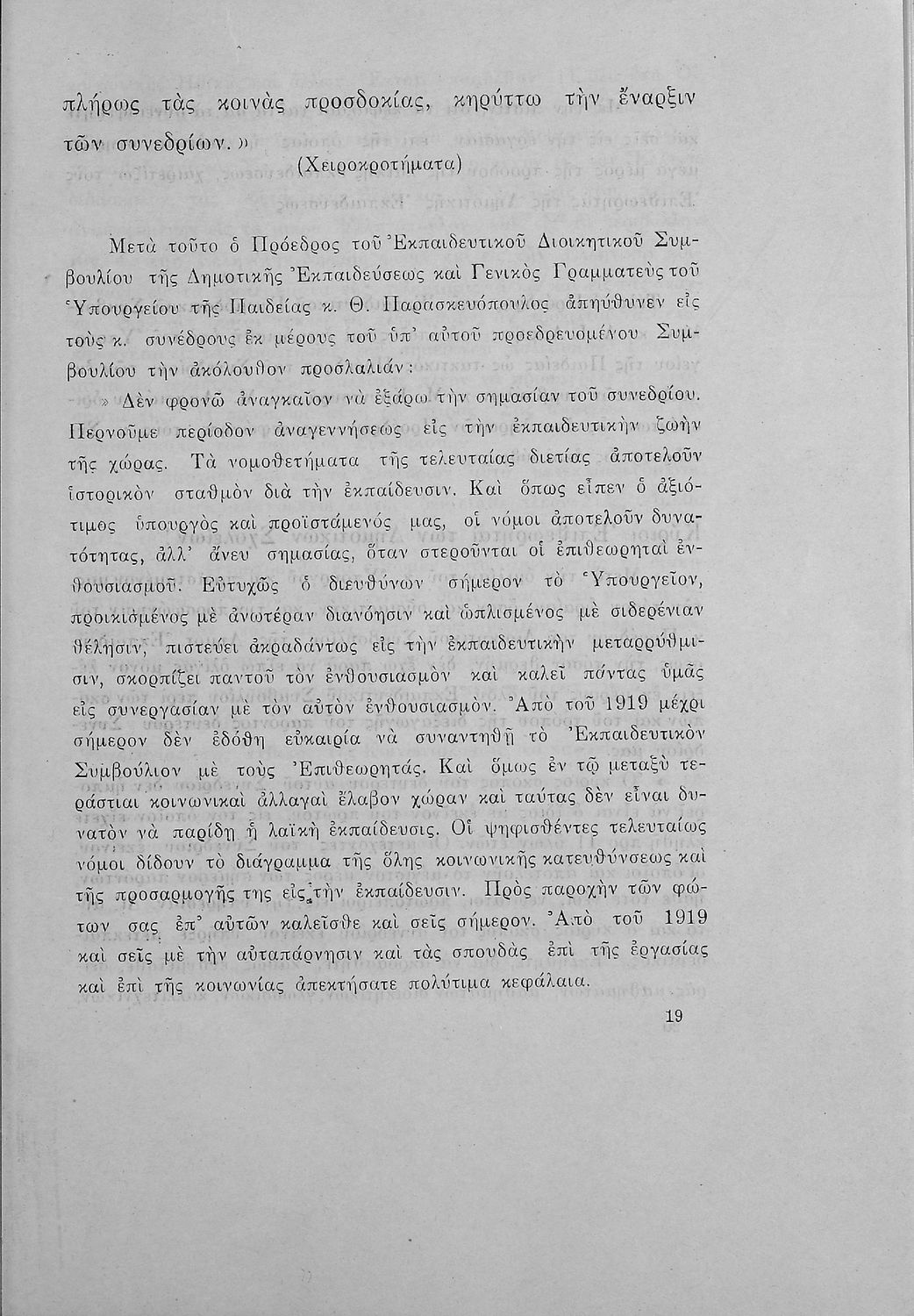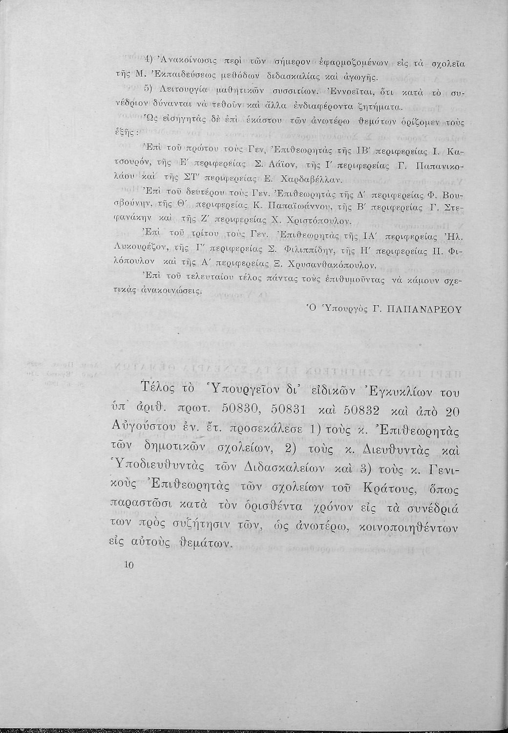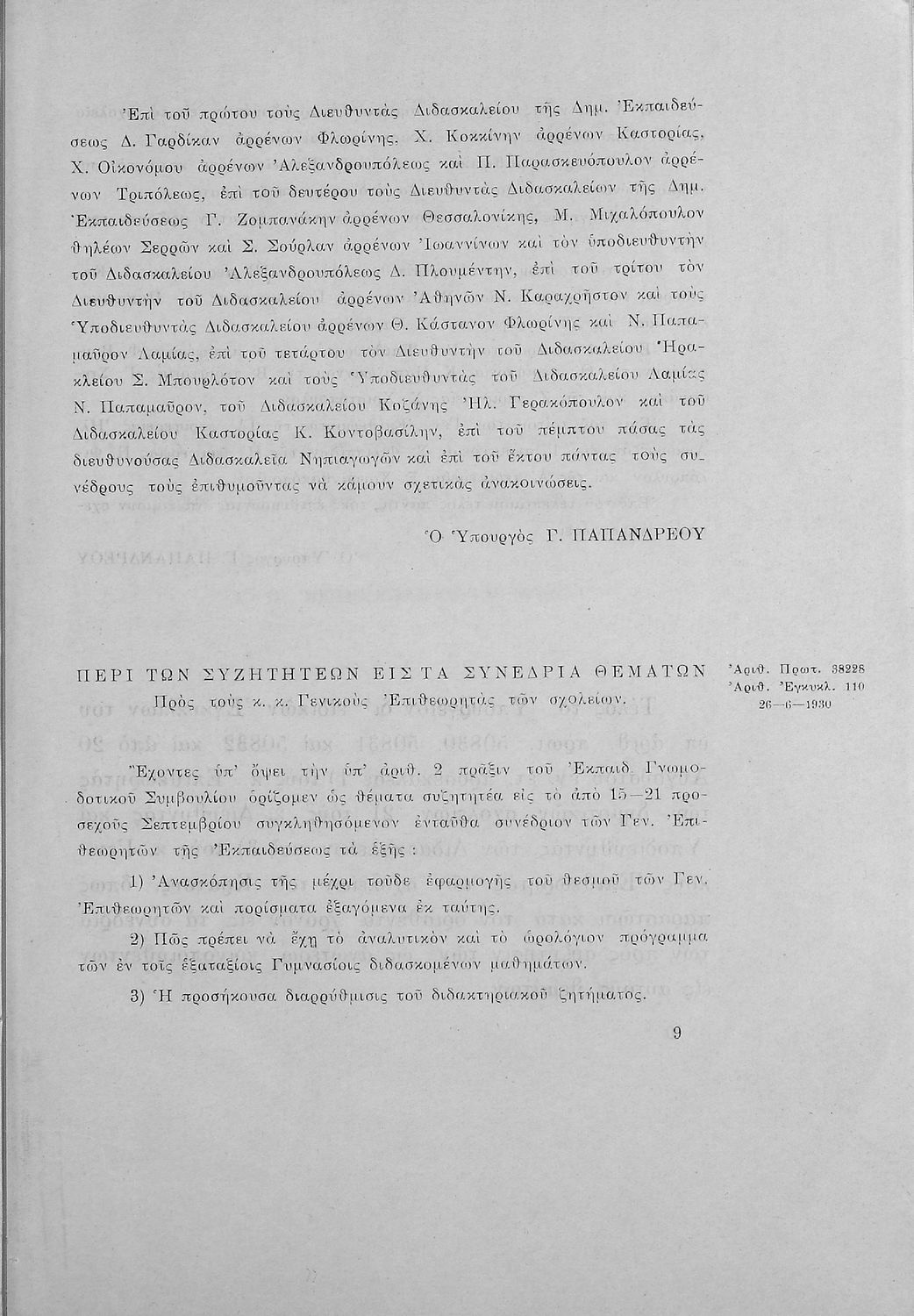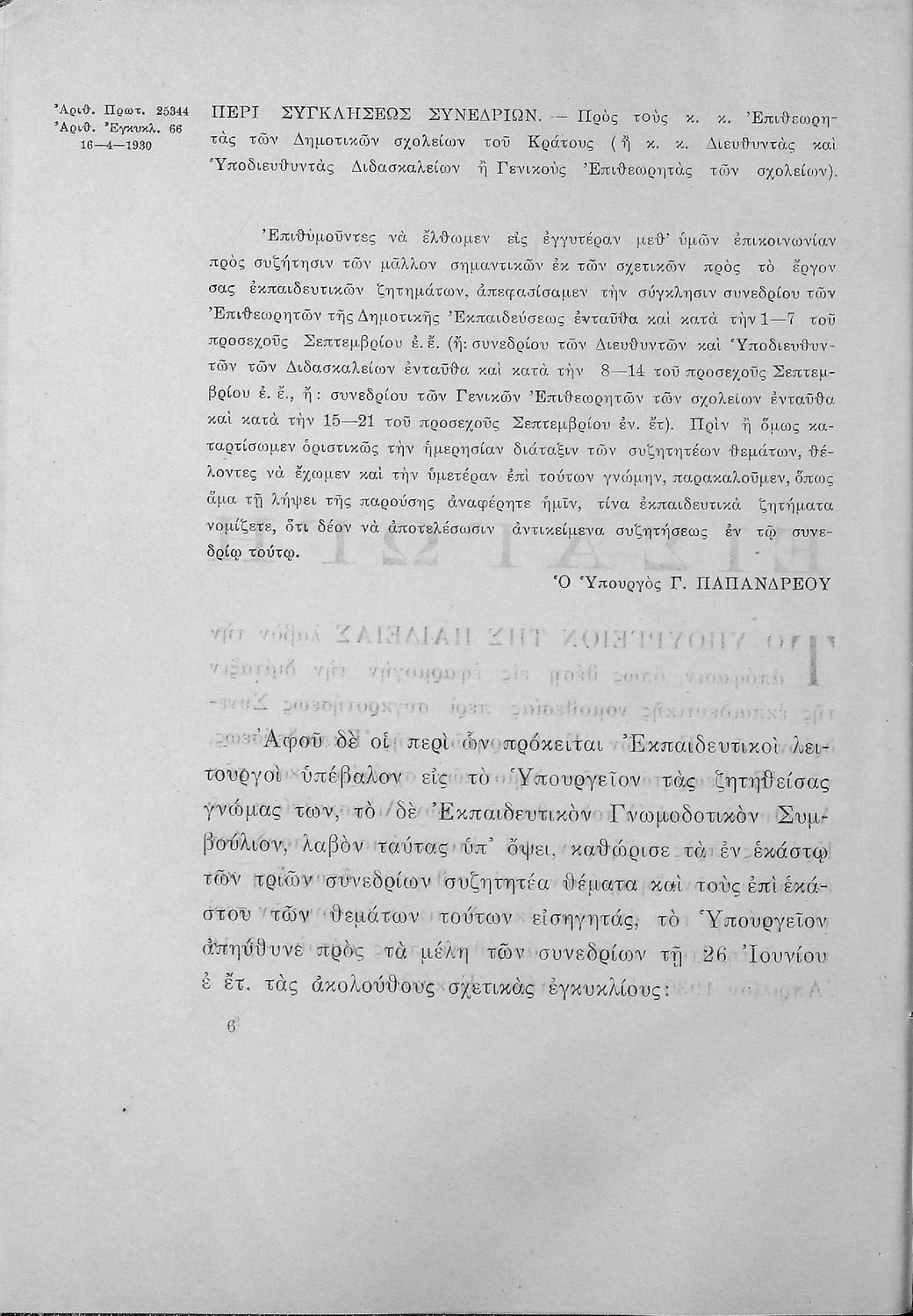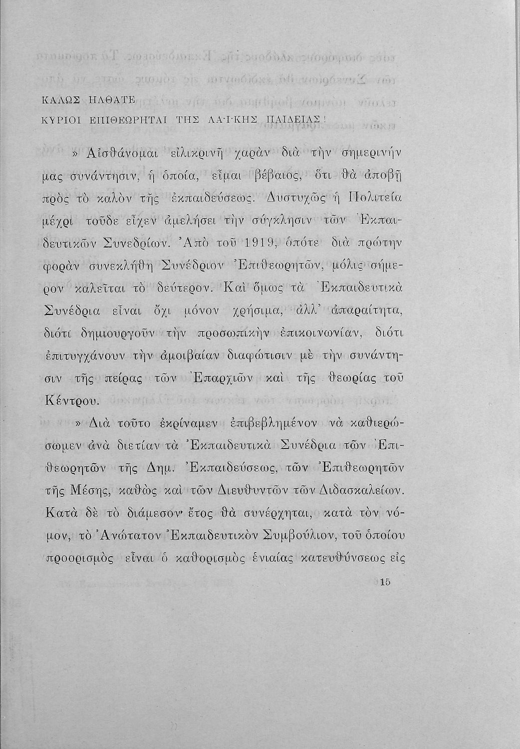 Περιέχει τα πρακτικά του συνεδρίου των επιθεωρητών Δημοτικής Εκπαιδεύσεως.