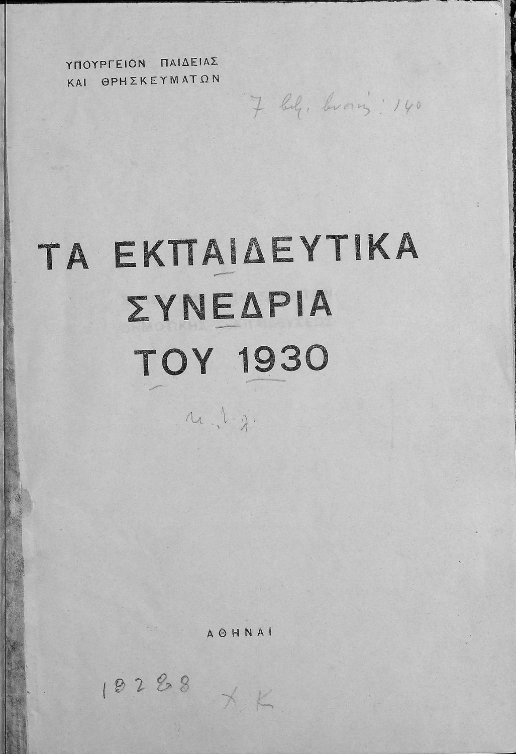 Τίτλος: Τα εκπαιδευτικά συνέδρια του 1930