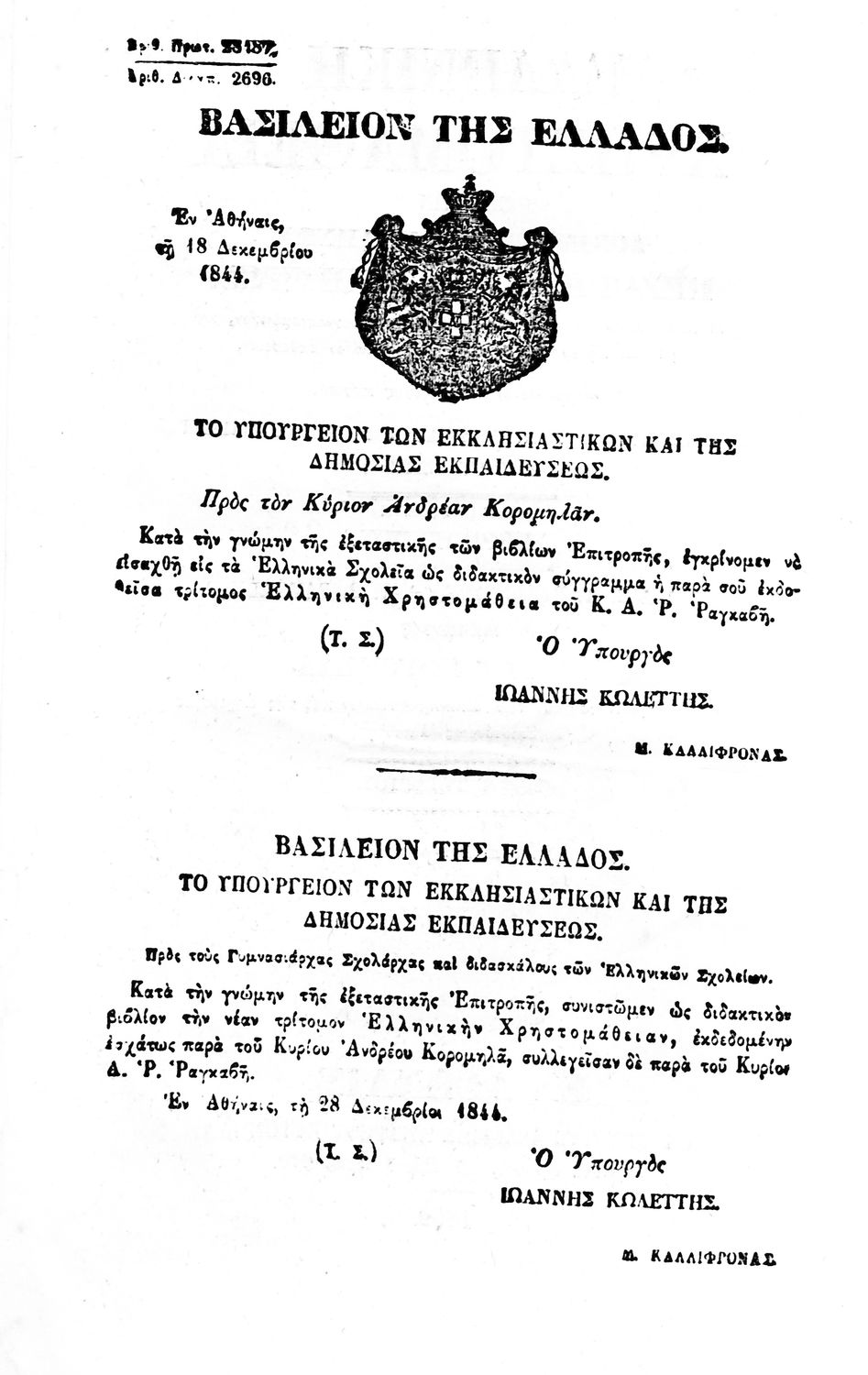 Υπουργική απόφαση / Σύμβαση: 23187/18-12-1844