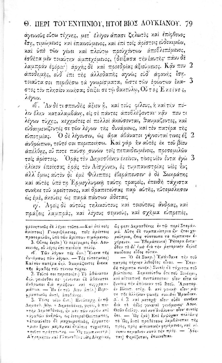 Σχολικό εγχειρίδιο Αρχαίων Ελληνικών που περιλαμβάνει αποσπάσματα από το έργο του Λουκιανού, του Πλάτωνα και του Πλούταρχου και ερμηνευτικές σημειώσεις.