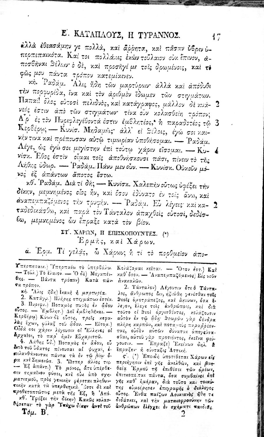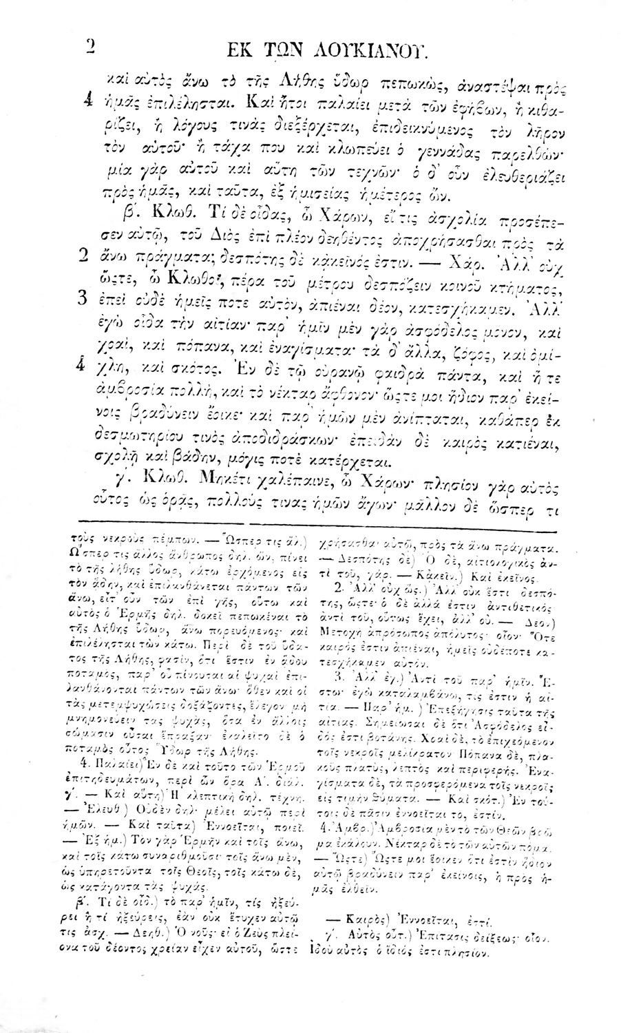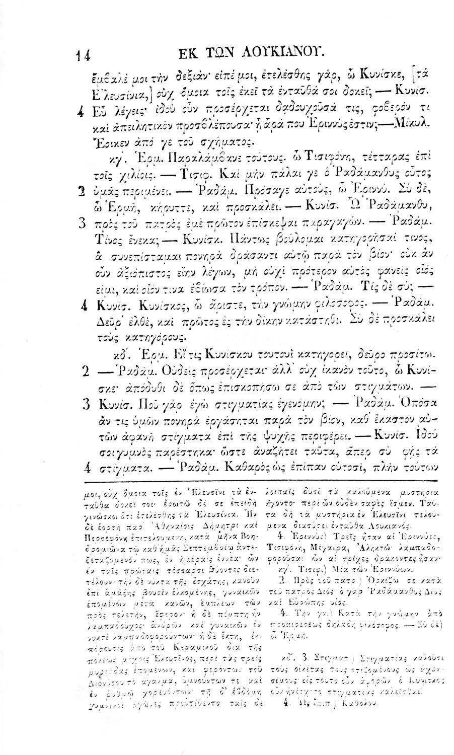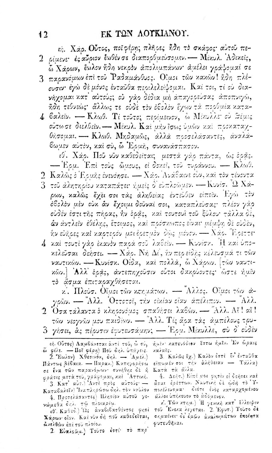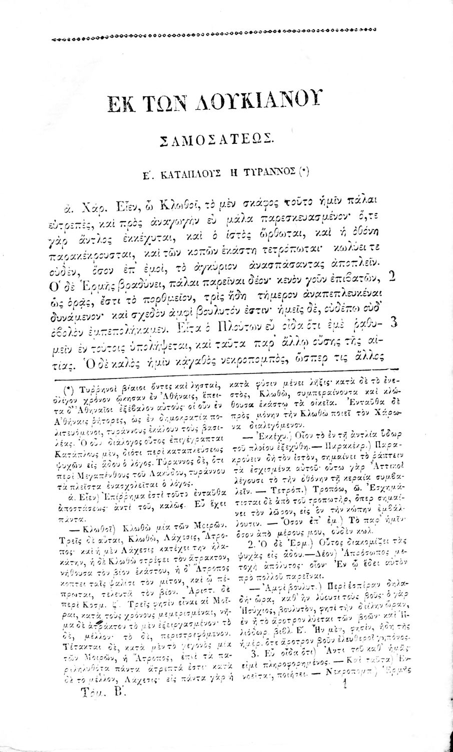 Σχολικό εγχειρίδιο Αρχαίων Ελληνικών που περιλαμβάνει αποσπάσματα από το έργο του Λουκιανού, του Πλάτωνα και του Πλούταρχου και ερμηνευτικές σημειώσεις.