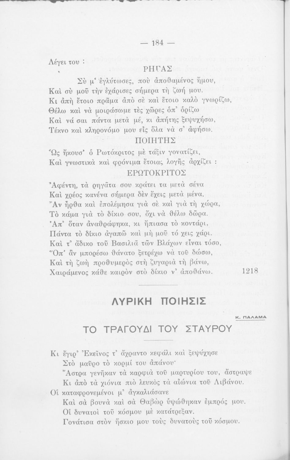 Σχετιζόμενοι όροι:  Κρυστάλλης, Παλαμάς, Σολωμός, Δροσίνης
