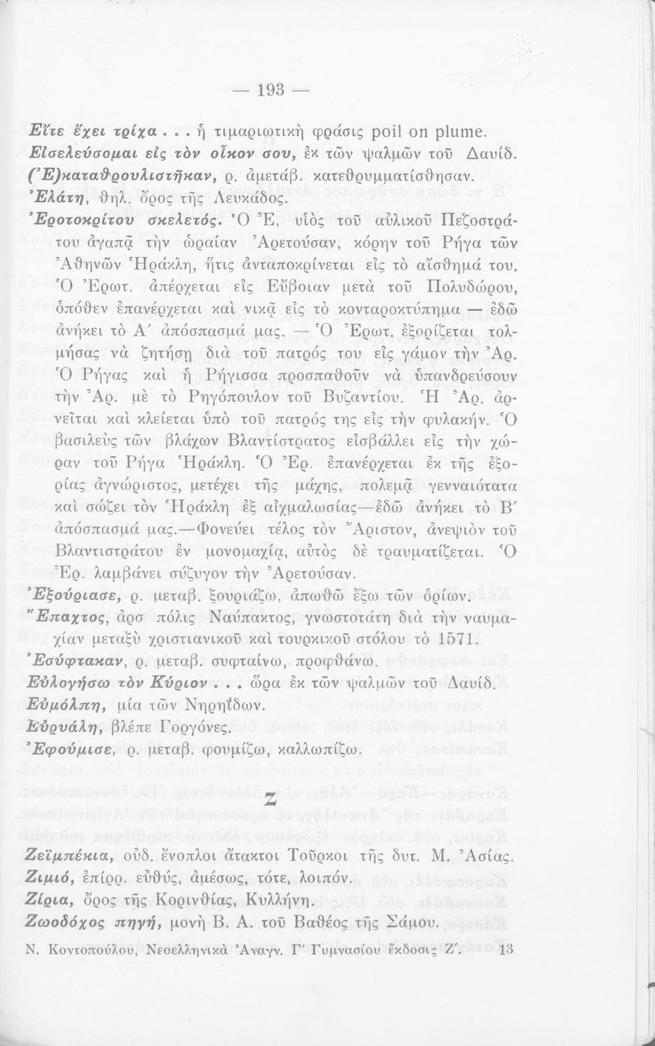 Σχολικό εγχειρίδιο για την Β΄ Γυμνασίου και την Γ΄ Αστικού Θηλέων για το μάθημα των Νέων Ελληνικών. Το εγχειρίδιο αποτελείται από κείμενα πεζού λόγου, επικολυρικά ποιήματα, ωδές, ηθογραφικά διηγήματα, ρητορικά