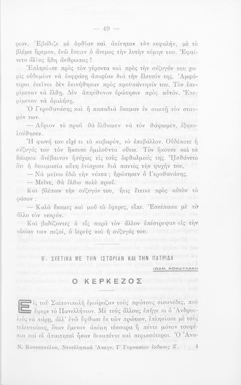 LDR 01633 2200217 4500 035 ## _a01-18291 040 ## _aΙνστιτούτο Εκπαιδευτικής Πολιτικής 041 ## _ael 100 ## _aΝικόλαος Κοντόπουλος 110 ## _a18291 245 0# _aΝεοελληνικά αναγνώσματα διά τους μαθητάς της Γ΄ τάξεως των Εξαταξίων Γυμνασίων και της αντιστοίχου των λοιπών της Μέσης Εκπαιδεύσεως 250 ## _a7η Έκδοση 260 ## _aΑθήνα _bΗλίας Ν.Δικαίος _c1940 300 ## _a212 _bΕικόνες (ασπρόμαυρες) _c20 520 ## _aΣχολικό εγχειρίδιο Νέων Ελληνικών Γ΄ Γυμνασίου που περιλαμβάνει ποιήματα και πεζά Ελλήνων συγγραφέων και δημοτικά τραγούδια εμπνευσμένα από την σύγχρονη ελληνική ιστορία, την ελληνική φύση και τη ζωή στην ύπαιθρο, την οικογενειακή και κοινωνική ζωή και τη θρησκευτική παράδοση. Περιέχει και παράρτημα με βιογραφίες των συγγραφέων και λεξιλόγιο. 521 ## _aΓ' Γυμνασίου 522 ## _aΕλλάδα 546 ## _aΚαθαρεύουσα / Δημοτική 563 ## _aΣκληρό Εξώφυλλο 583 ## _a41719/26-8-1933 _c1933 650 #4 _aΒαλαωρίτης _aΒιζυηνός _aΚορνάρος _aΝιρβάνας _aΠαλαμάς