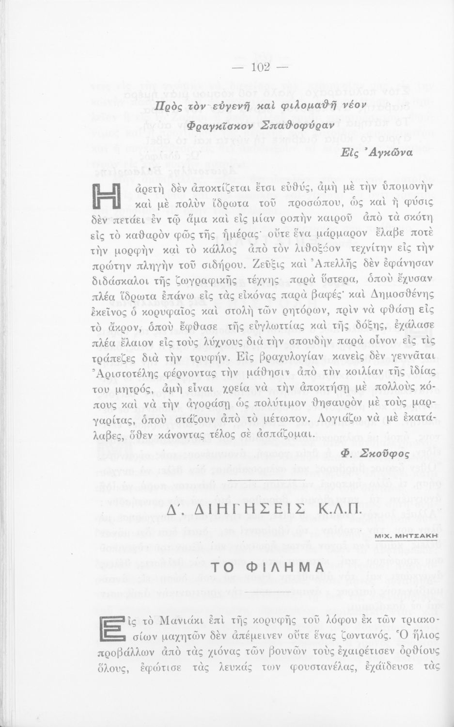 Σχολικό εγχειρίδιο Νέων Ελληνικών Γ΄ Γυμνασίου που περιλαμβάνει ποιήματα και πεζά Ελλήνων συγγραφέων και δημοτικά τραγούδια εμπνευσμένα από την σύγχρονη ελληνική ιστορία, την ελληνική φύση και τη ζωή στην ύπαιθρο, την οικογενειακή και κοινωνική ζωή και τη θρησκευτική παράδοση. Περιέχει και παράρτημα με βιογραφίες των συγγραφέων και λεξιλόγιο.