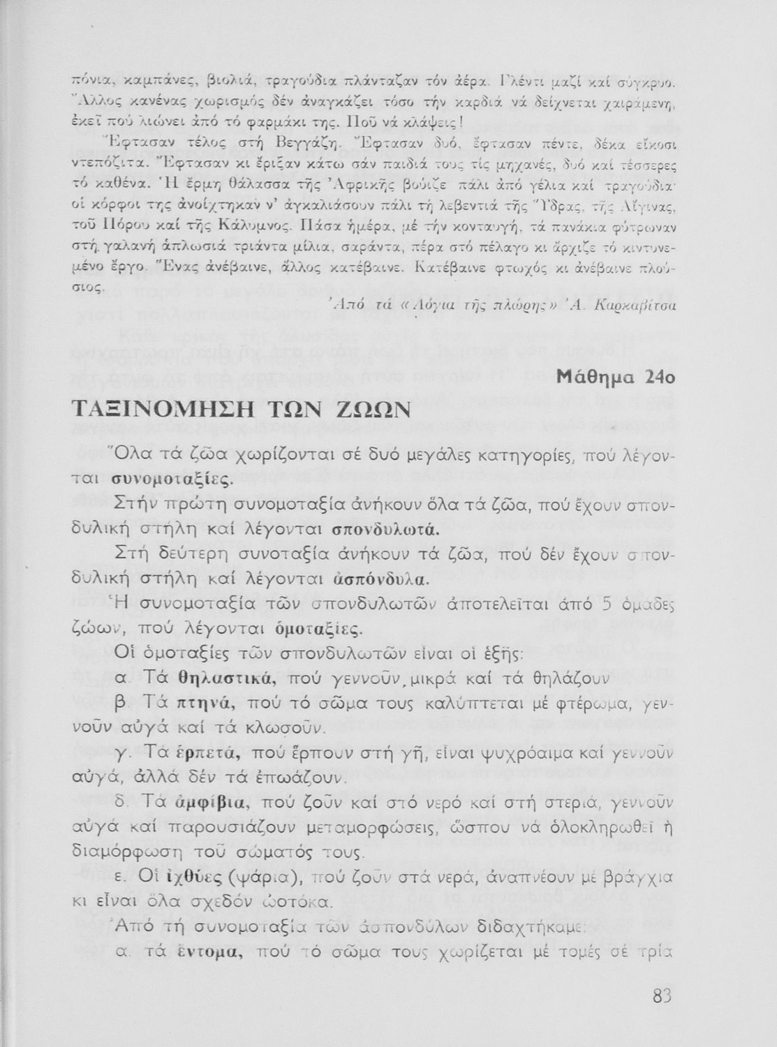 Σχολικό εγχειρίδιο της ΣΤ΄ Δημοτικού για το μάθημα της Φυσικής Ιστορίας στο Δημοτικό. Περιέχει πληροφορίες για την ζωολογία και τη ανθρωπολογία. Το βιβλίο έχει εικόνες, οι οποίες διευκολύνουν τη διδασκαλία. Ο λόγος των κειμένων είναι απλός και κατανοητός για τους μαθητές.