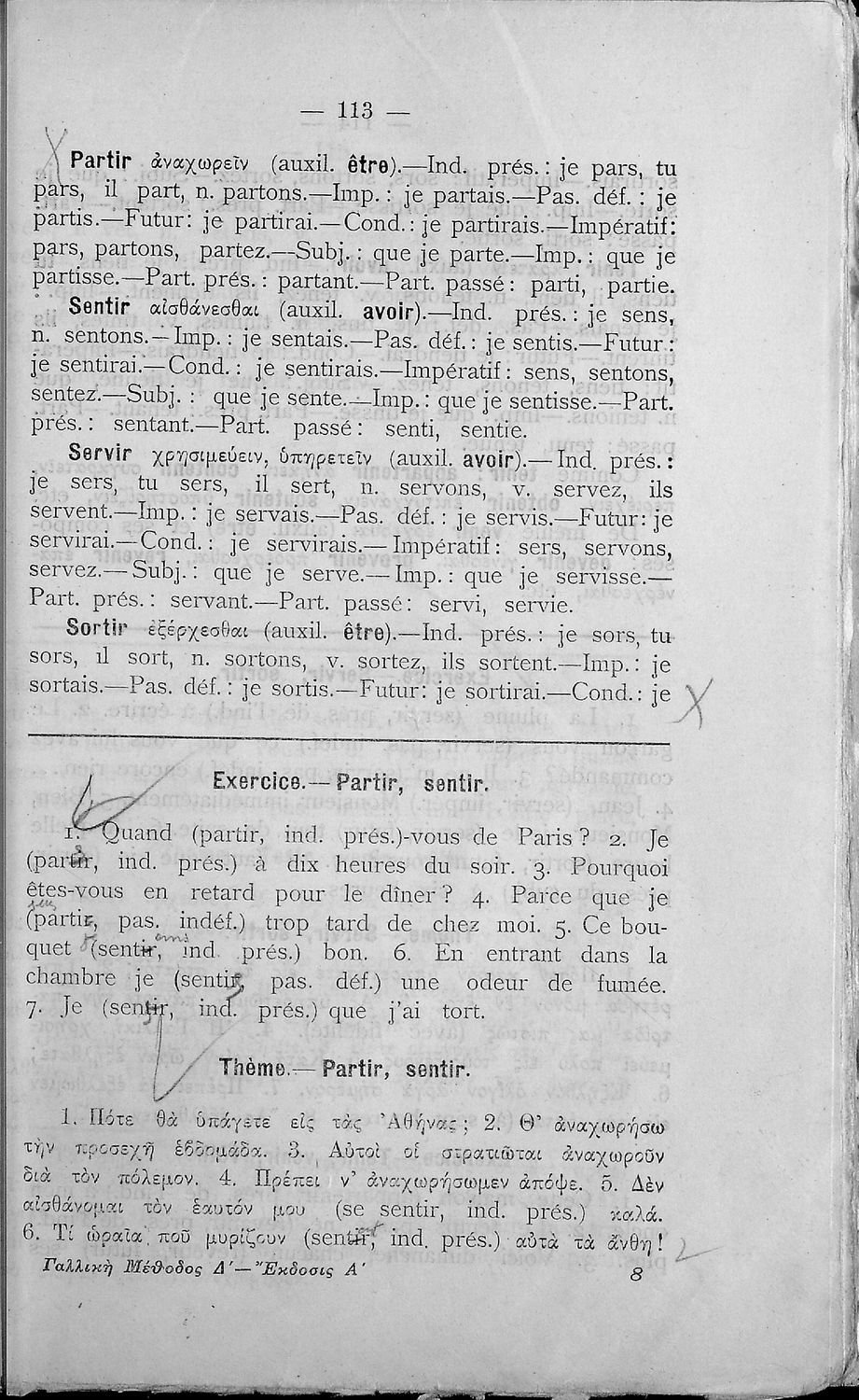 Τίτλος: Γαλλική μέθοδος εγκεκριμένη υπό του Υπουργείου της Παιδείας δια την Δ’ τάξιν των Εξαταξίων Γυμνασίων και τας αντιστοίχους τάξεις των λοιπών σχολείων της Μέσης Εκπαιδεύσεως