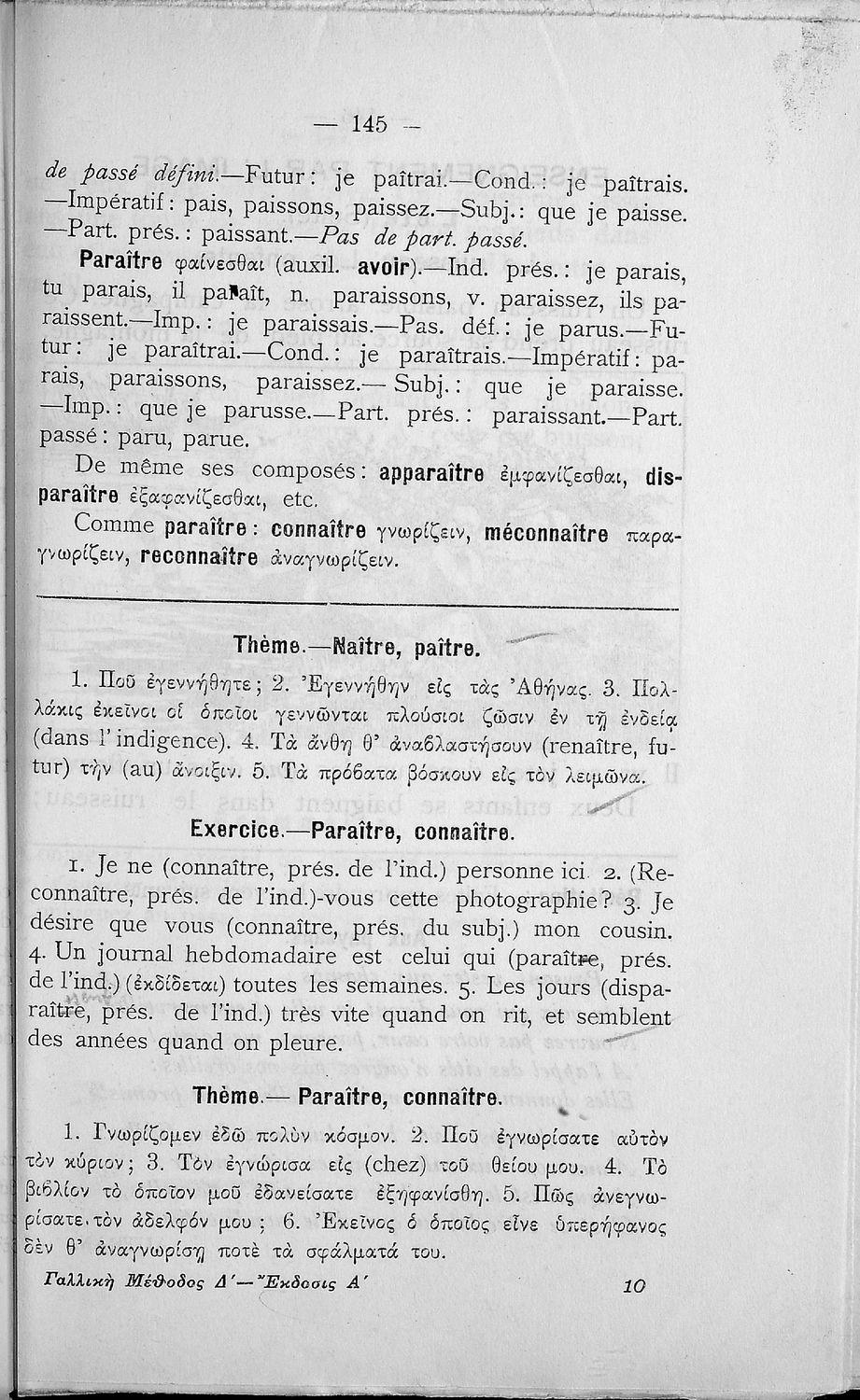 Τίτλος: Γαλλική μέθοδος εγκεκριμένη υπό του Υπουργείου της Παιδείας δια την Δ’ τάξιν των Εξαταξίων Γυμνασίων και τας αντιστοίχους τάξεις των λοιπών σχολείων της Μέσης Εκπαιδεύσεως