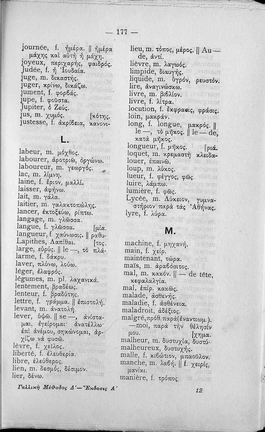 Τίτλος: Γαλλική μέθοδος εγκεκριμένη υπό του Υπουργείου της Παιδείας δια την Δ’ τάξιν των Εξαταξίων Γυμνασίων και τας αντιστοίχους τάξεις των λοιπών σχολείων της Μέσης Εκπαιδεύσεως