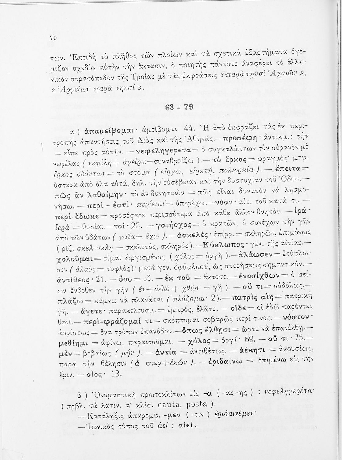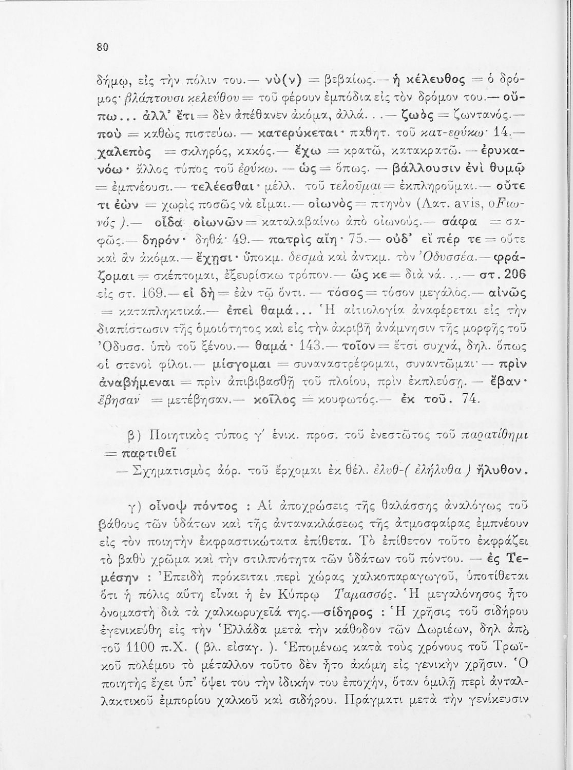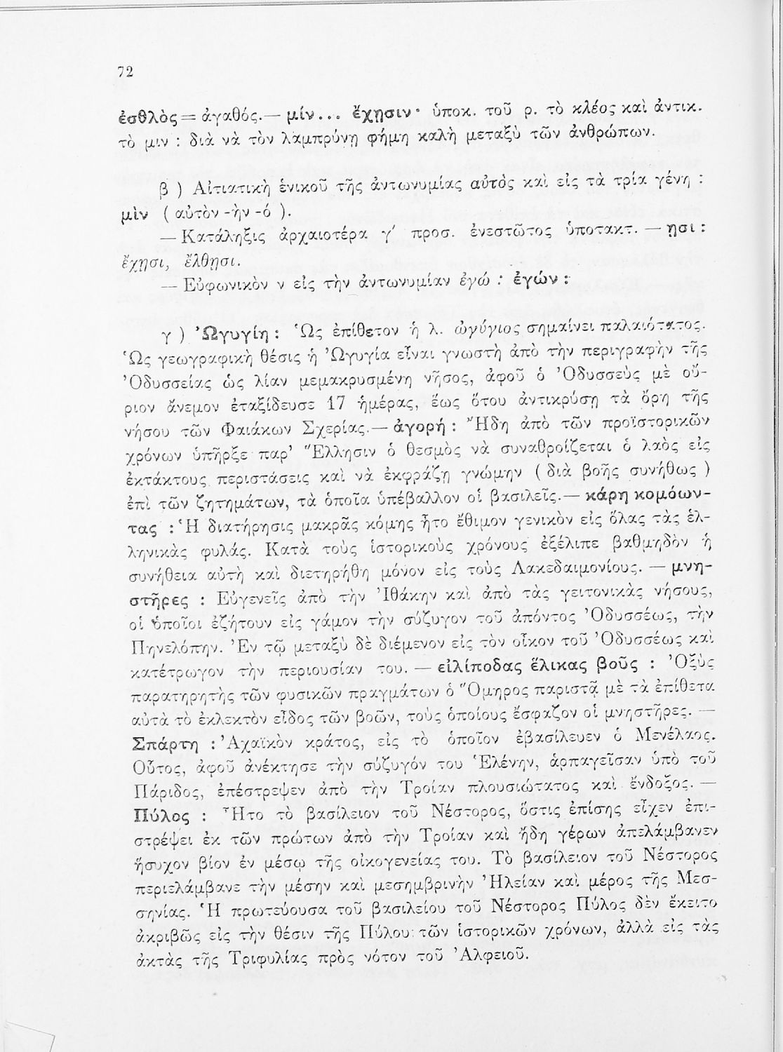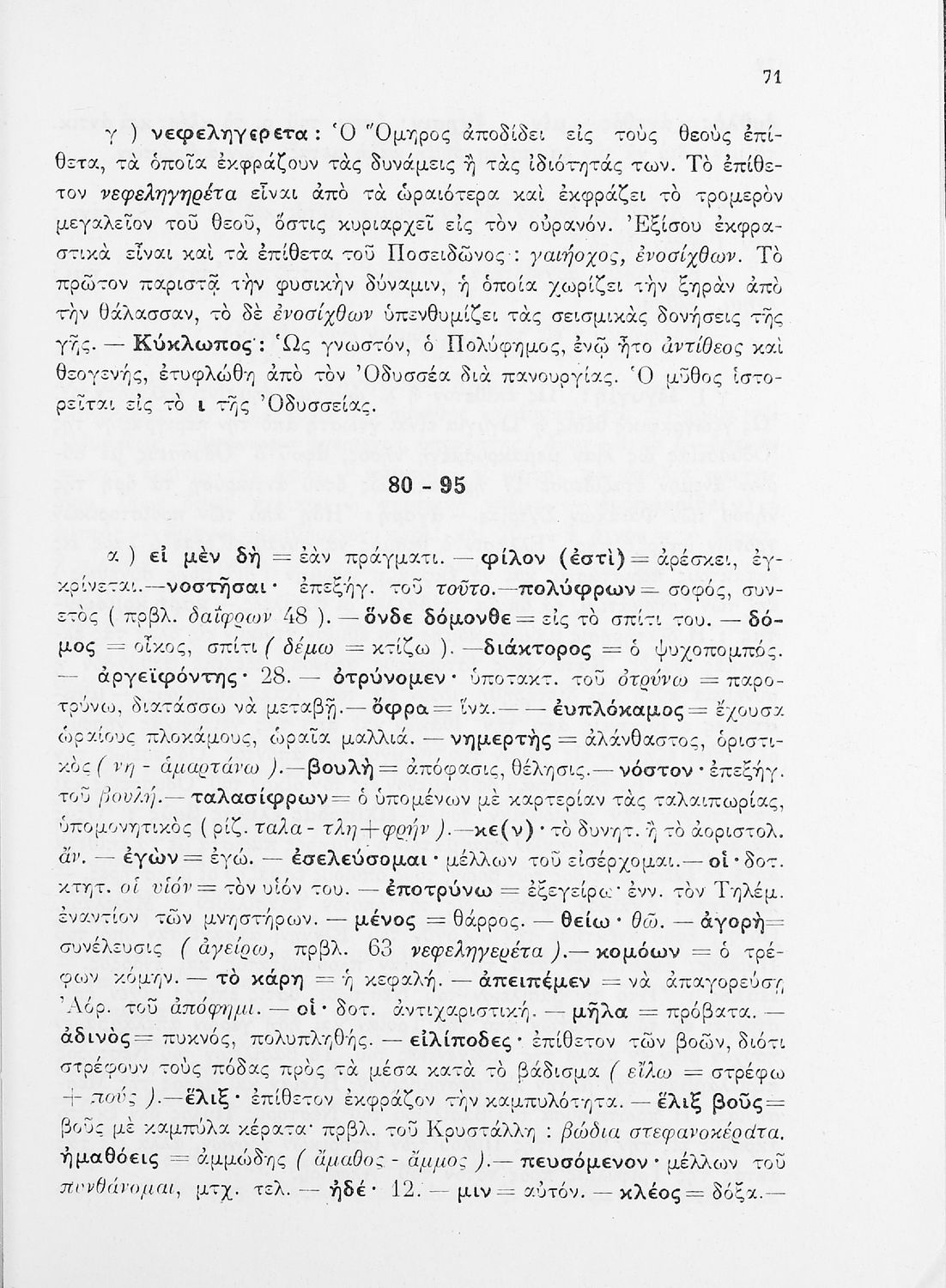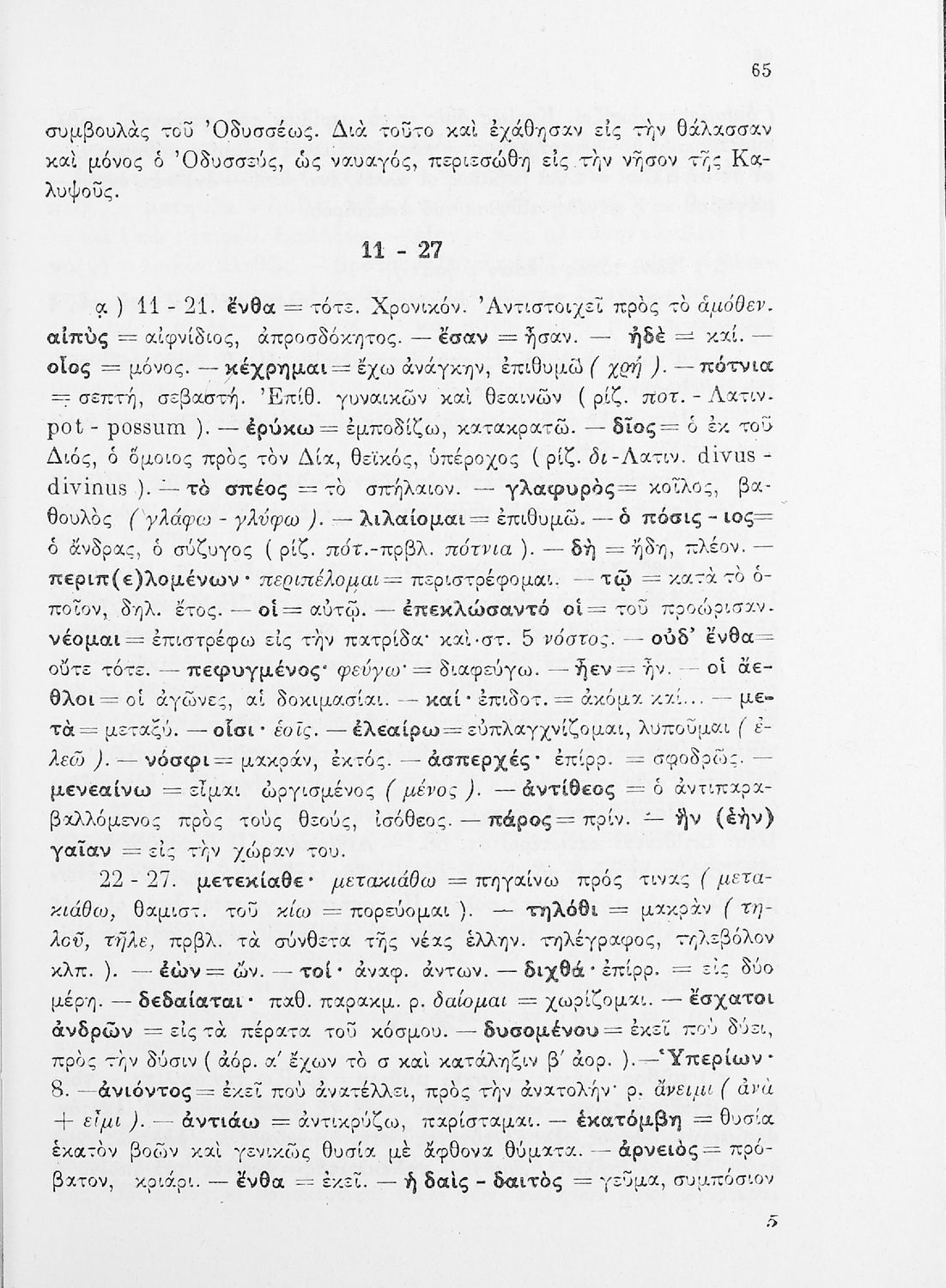 Σχολικό εγχειρίδιο Αρχαίων Ελληνικών Γυμνασίου που περιλαμβάνει μετάφραση της Οδύσσειας και λεξιλόγιο.